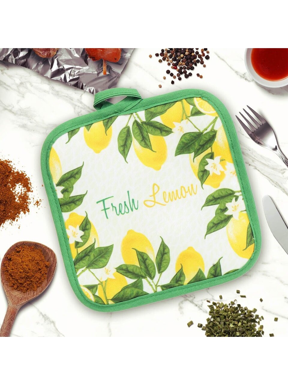 Прихватка 18х18 см, 100% полиэстер, Лимоны новые, Y9-191