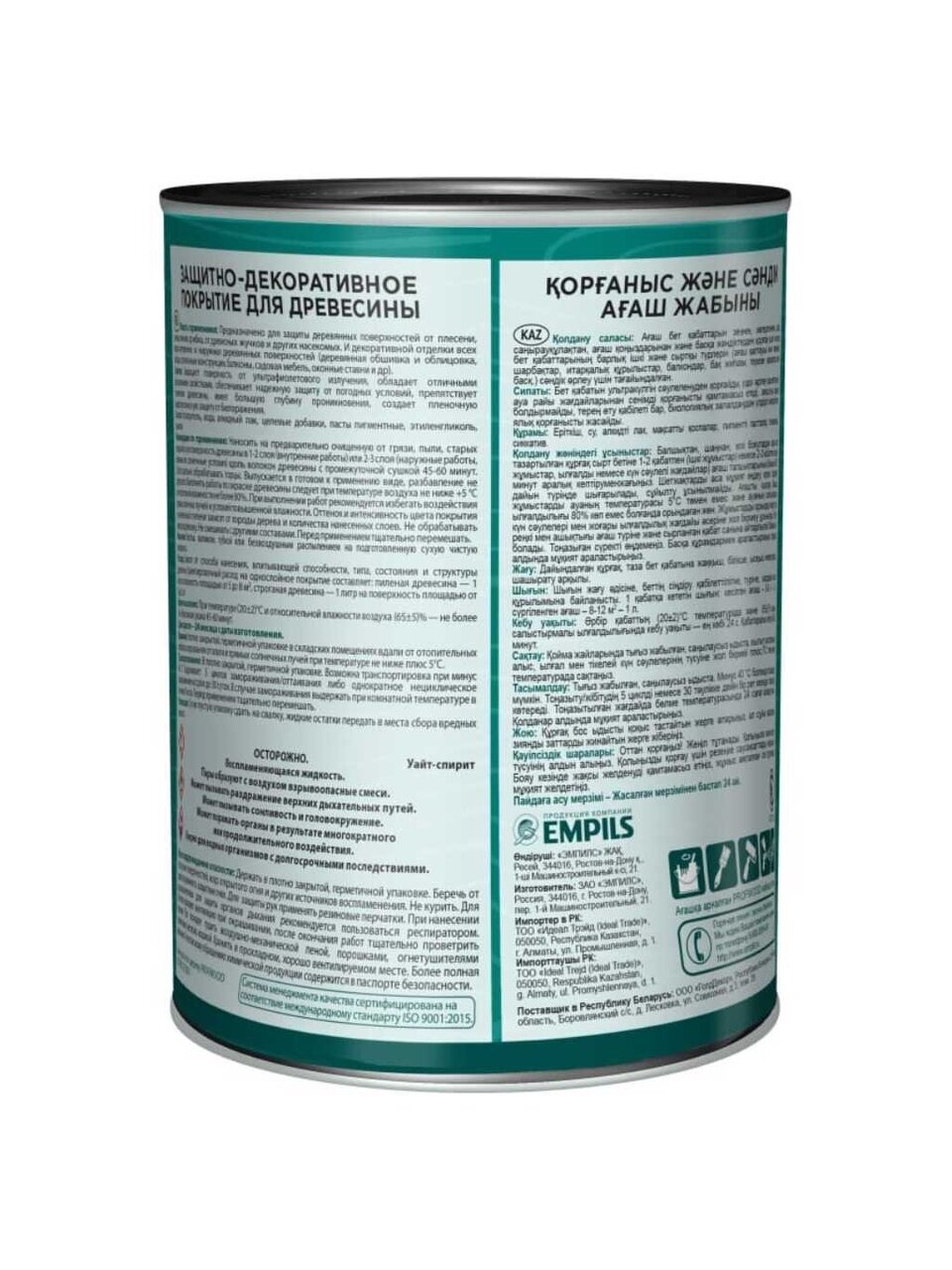 Состав: алкидный лак, эмульсия, светостойкие пигменты, растворитель, добавки целевого назначения