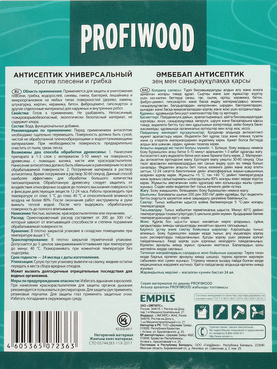 - Работает против всех видов плесени и грибка — универсальное средство для любых деревянных поверхностей.