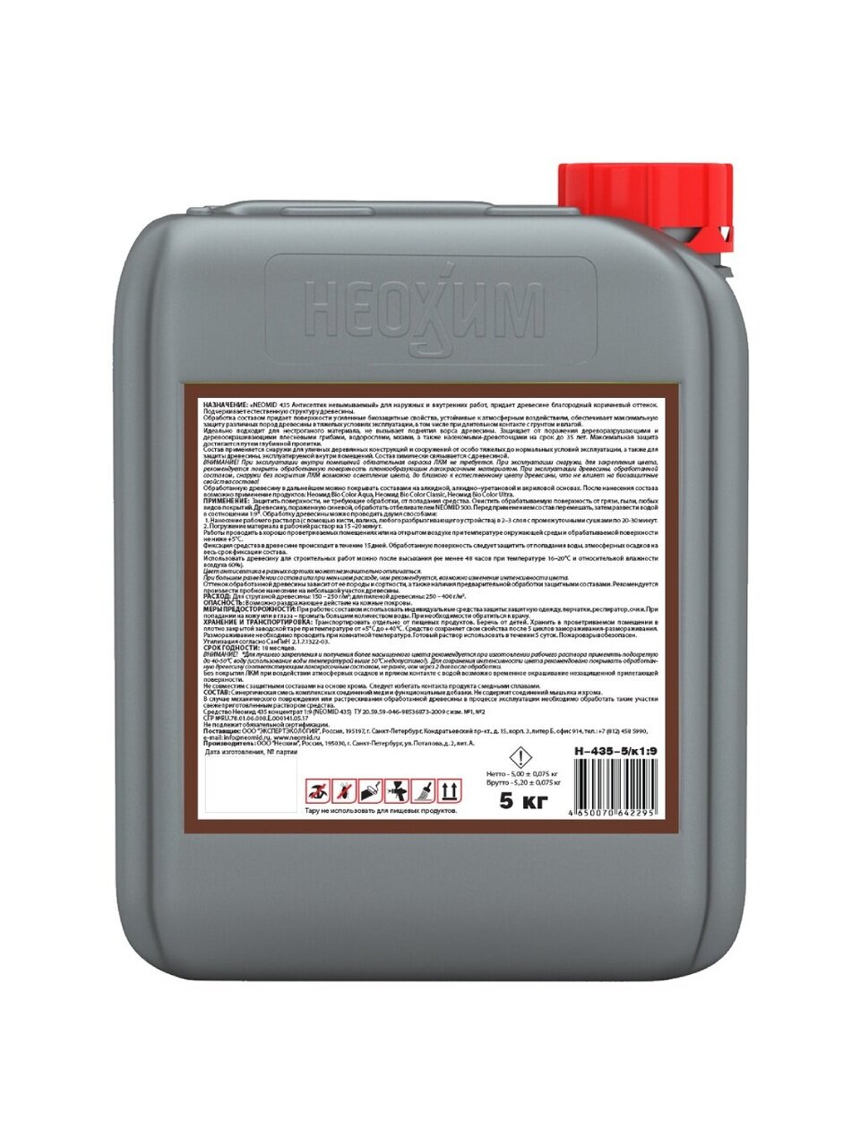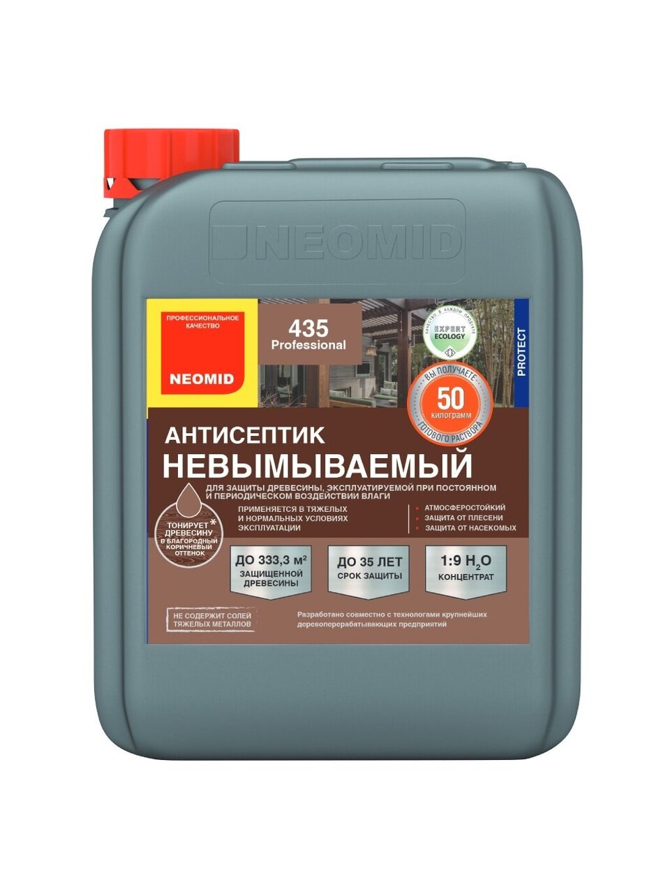 «NEOMID 435 Антисептик невымываемый» для наружных и внутренних работ, придает древесине благородный коричневый оттенок. Подчеркивает естественную структуру древесины.