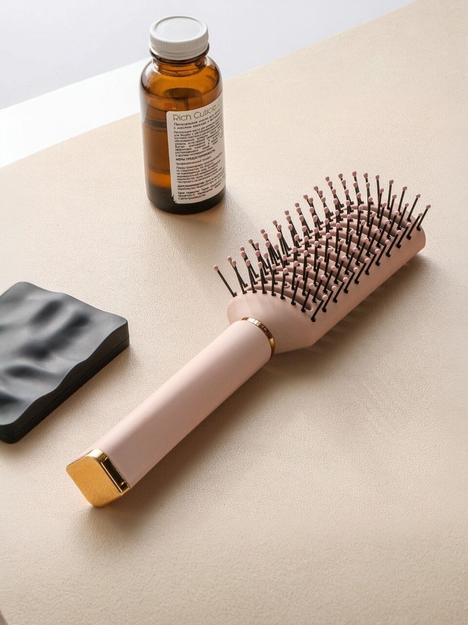 - Уникальный дизайн: эргономичная прямоугольная форма и стильный розовый цвет выделяют расческу среди аналогов