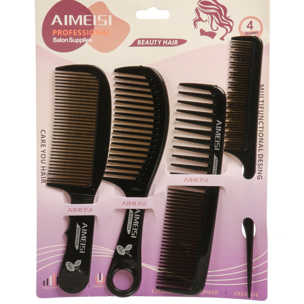 Набор расчесок-гребней, 4 шт, чер, A100081