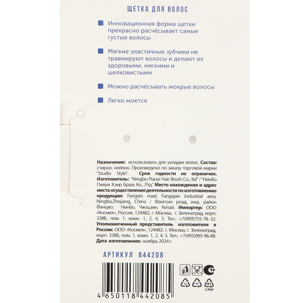 Расческа выполнена из прочного стирола и эластичного нейлона, что обеспечивает износостойкость и долгий срок службы даже при частом использовании.