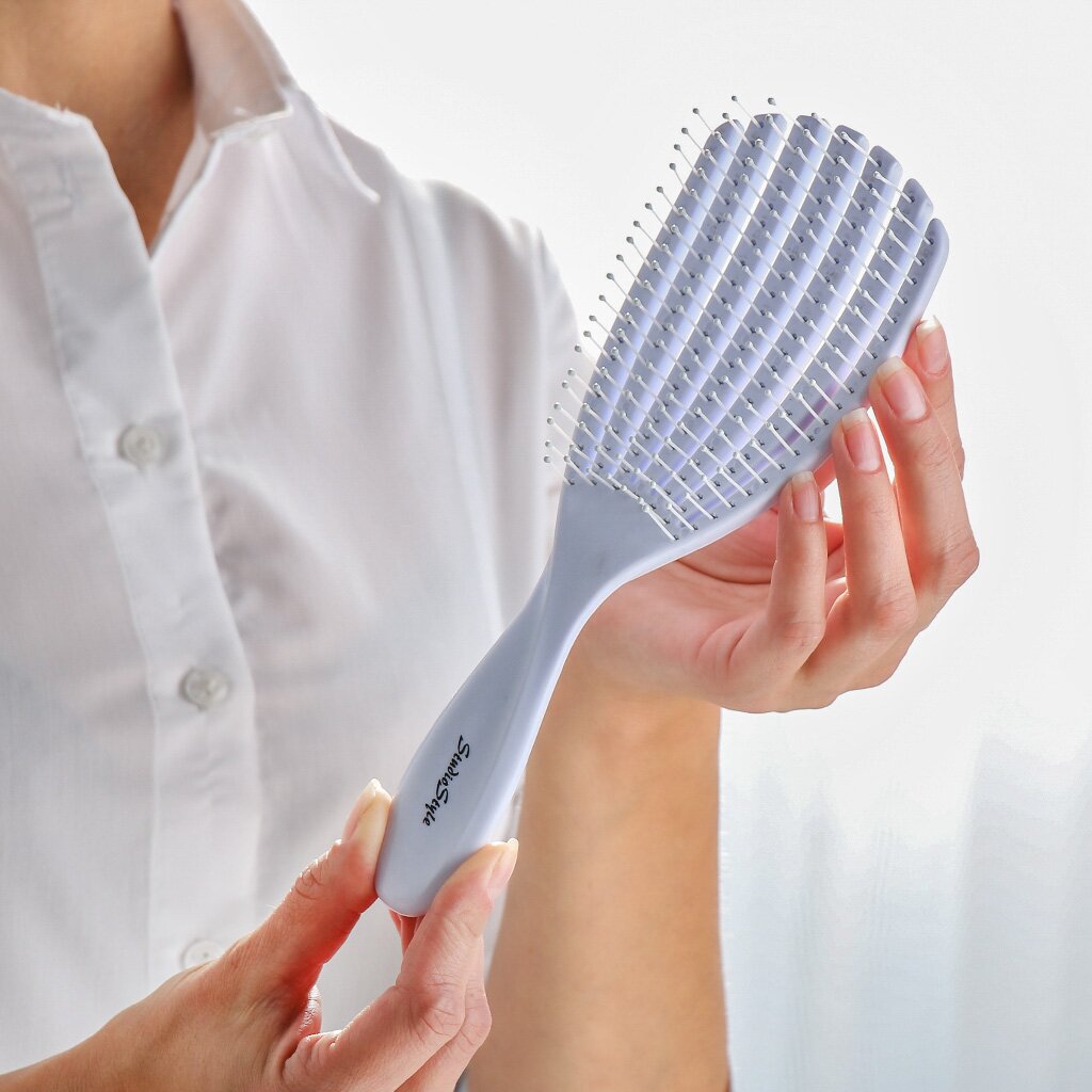 Широкая скелетная расческа для волос Studio Style "Релакс" — это современное решение для тех, кто ищет, какую расческу выбрать для ежедневного и бережного ухода. Благодаря продуманной скелетной форме, она легко распутывает даже густые или влажные волосы, не травмируя структуру и не вызывая ломкости. Часто спрашивают, подходит ли эта модель для длинных или коротких волос — универсальный размер и гибкие нейлоновые зубья делают ее оптимальной для всех типов и длины.