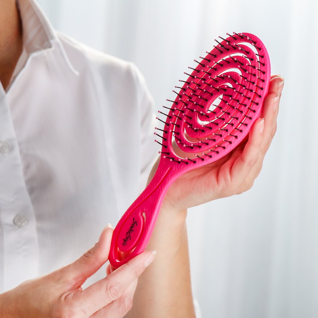 - Уникальная изогнутая овальная форма — снижает натяжение, предотвращает ломкость волос.