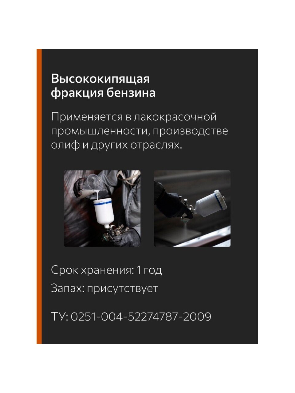 - Массовая доля серы не более: 0,1 %;