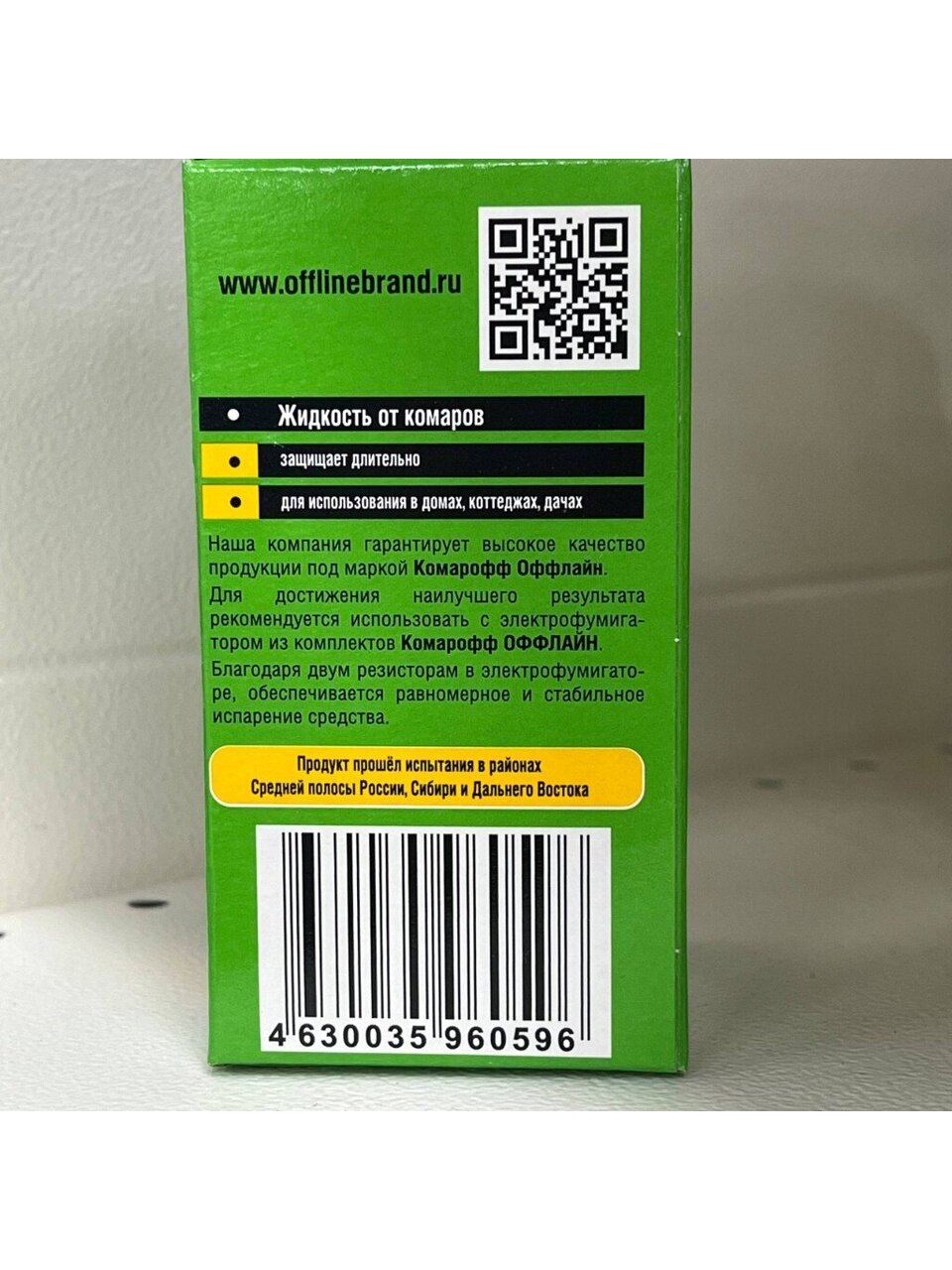 Вы можете приобрести «Репеллент от комаров, жидкость для фумигатора, без запаха, 70 ночей, Комарофф Оффлайн, Длительно, 45 мл, OF1070051» и другие товары в нашем интернет-магазине в Старом Осколе по низким ценам и с бесплатным самовывозом.