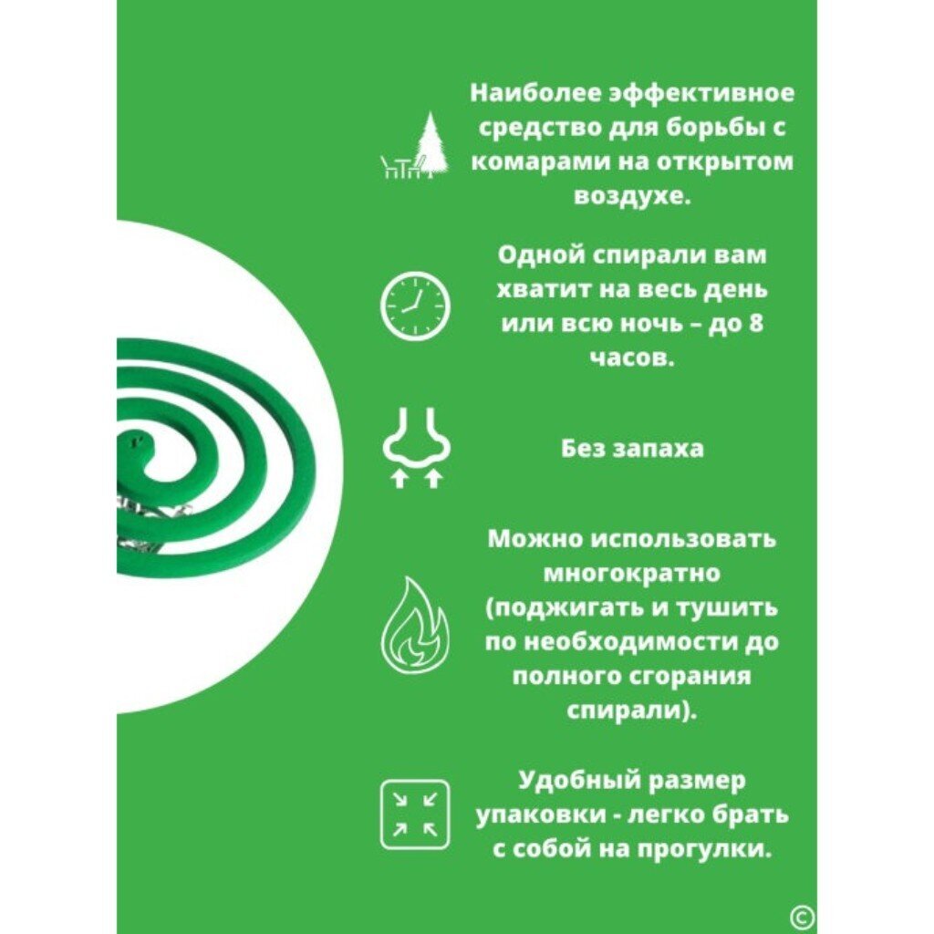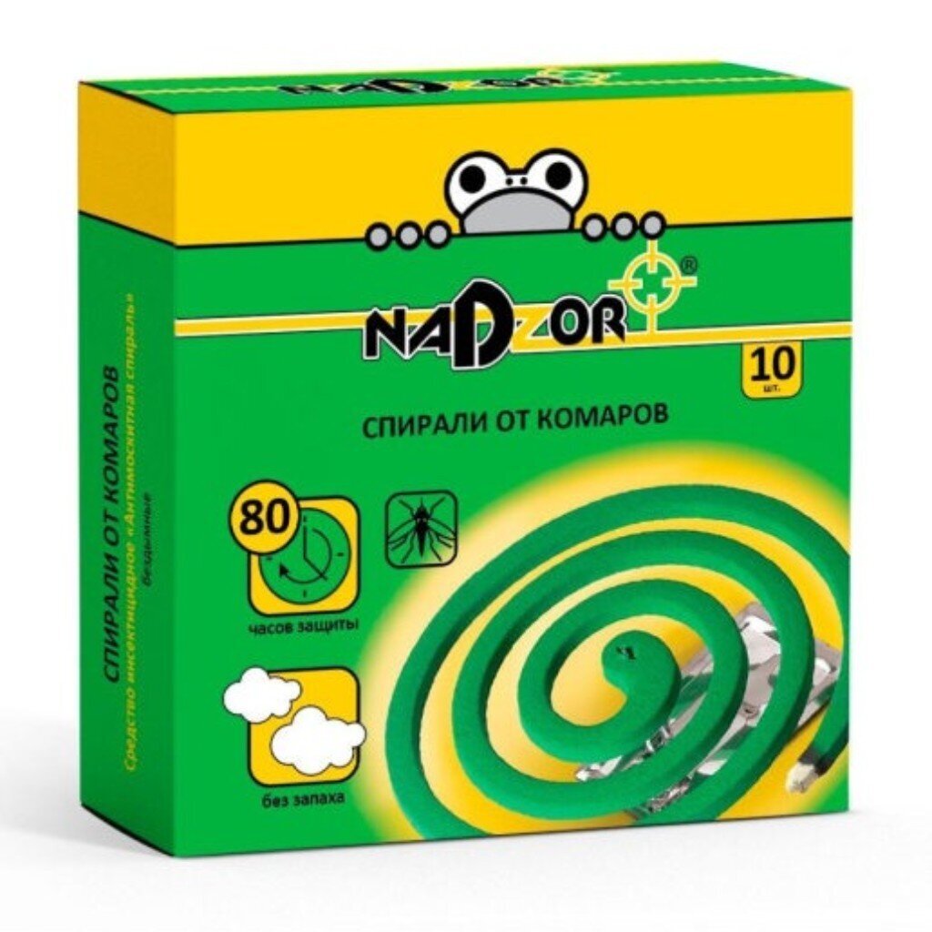 Репеллент от комаров Nadzor в формате спирали — эффективная защита от комаров, мошек и москитов на даче, дома и на улице. Малодымные зеленые спирали без запаха обеспечивают комфортное использование без раздражающих ароматов. В упаковке 10 штук — удобно для регулярного применения. Отличный выбор для людей, ценящих чистый воздух и безопасность.