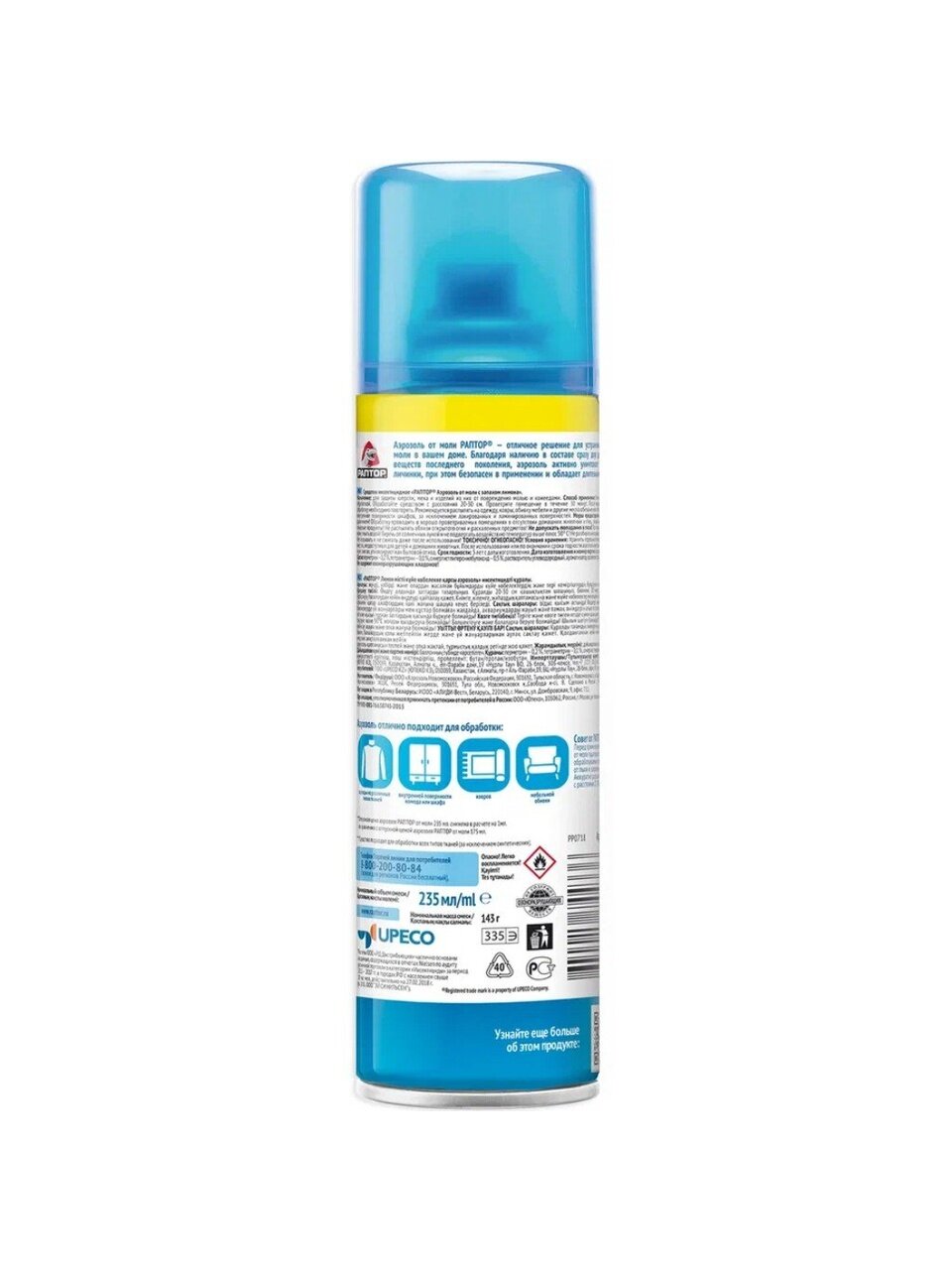 Репеллент от моли Раптор в формате аэрозоля — эффективное средство для борьбы с молью в помещениях. Благодаря удобной форме распыления быстро уничтожает насекомых, защищая одежду и текстиль. Объем 235 мл обеспечивает длительное использование. Идеальное решение для поддержания чистоты и уюта в доме.