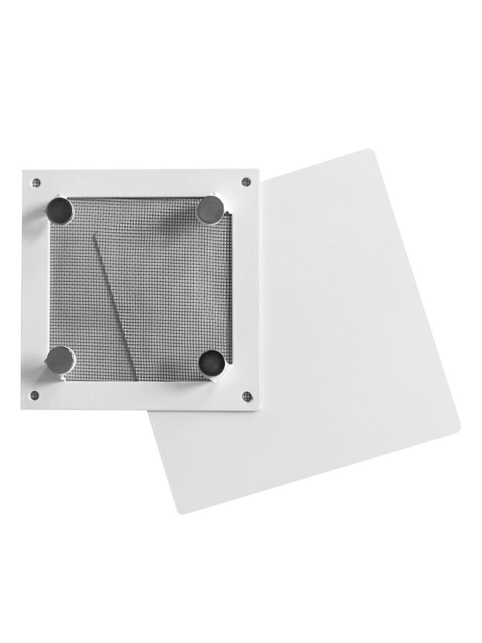 Вентиляционная панель на магнитах состоит из двух частей. Рамка с сеткой крепится к стене при помощи саморезов или клея, а панель фиксируется к рамке при помощи магнитов.