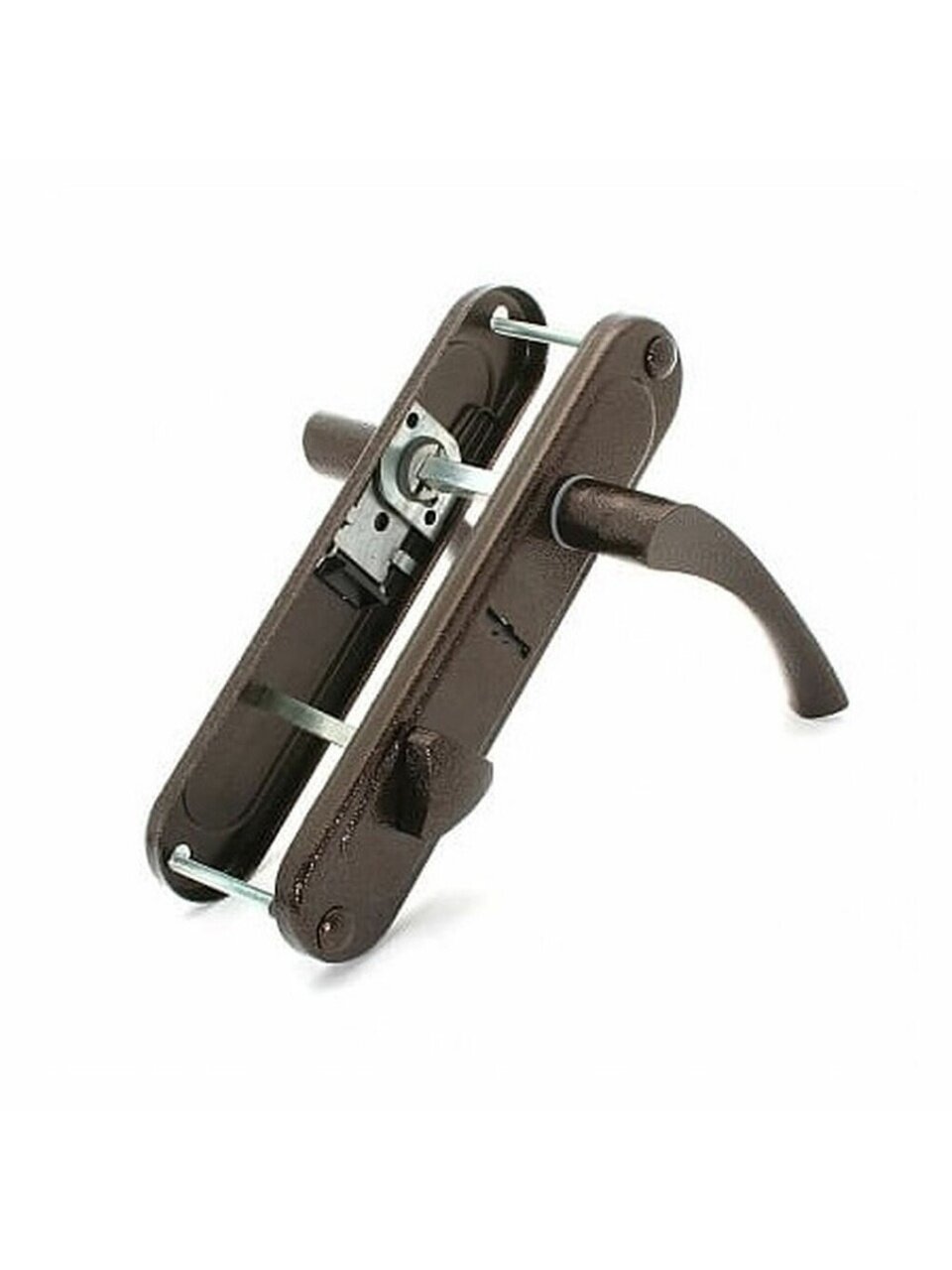 Дверная ручка Эльбор 4.642 имеет форму капли и цвет медный антик. Подходит к врезным замкам ЭЛЬБОР 1.06.40, 1.06.42, 1.05.41 и 1.05.42, устанавливаемым в левые металлические двери. Ручка оснащена подпружиненной шторкой, а также поворотником, предназначенным для управления задвижкой замка изнутри помещения. Поворотник расположен на планке, которая ставится на внутреннюю сторону двери. Рукоятки одеваются на квадрат сечением 8х8 мм и длиной 120 мм. Планки крепятся между собой винтовыми стяжками.