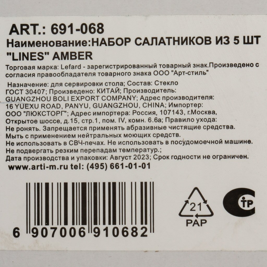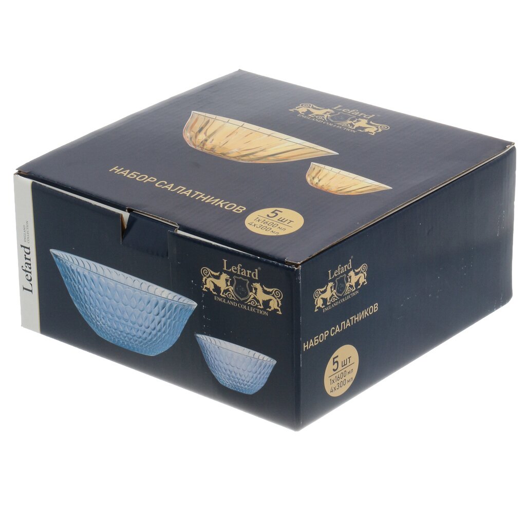 Набор салатников Lefard Lines Amber: 5 стеклянных мисок (1.6/0.3 л) — стиль для современной кухни и идеальный подарок. Решение для сервировки и хранения.