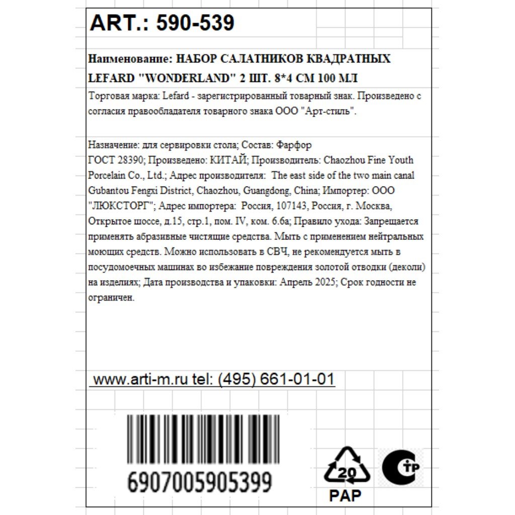 Фарфор не впитывает запахи, легко моется, сохраняет свежесть блюд и стильно смотрится на любом столе. Подарочная упаковка делает набор отличным подарком.