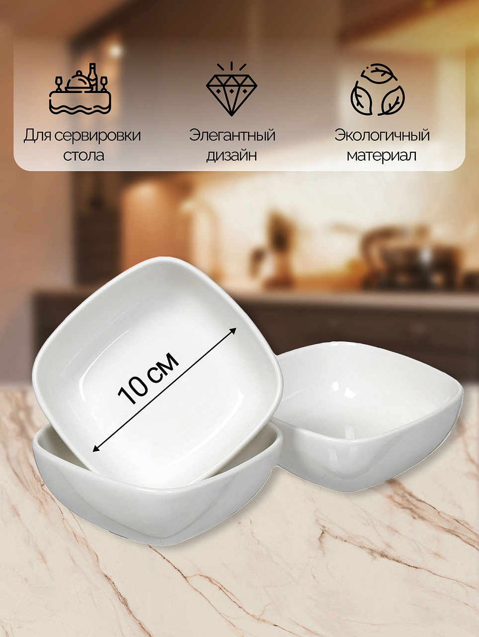 Салатники керамические квадратные 10х5 см, набор 3 шт — стиль и универсальность для сервировки стола дома и на даче по выгодной цене