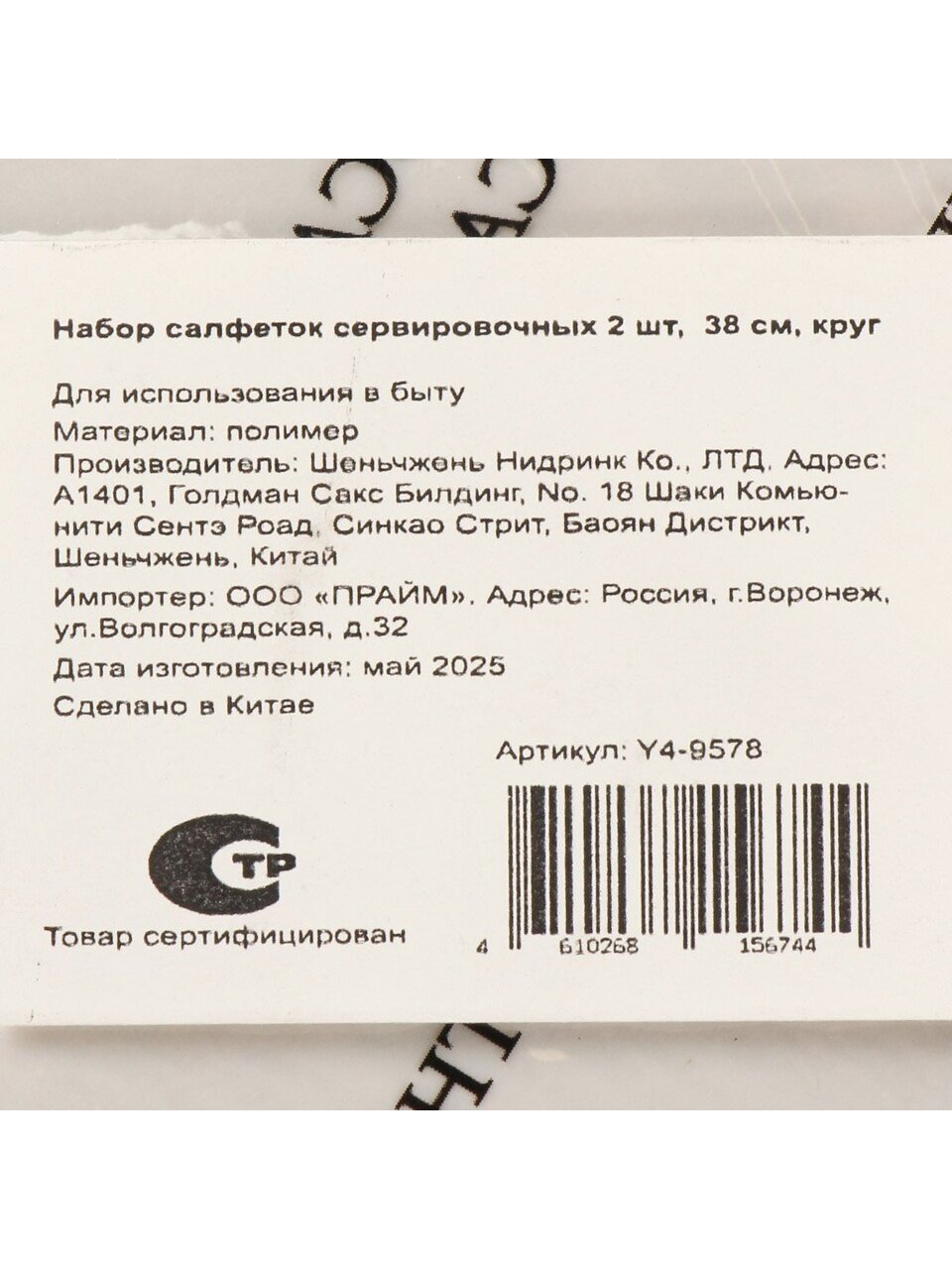 Салфетка сервировочная полимер, 38 см, круглая, 2 шт, Y4-9578
