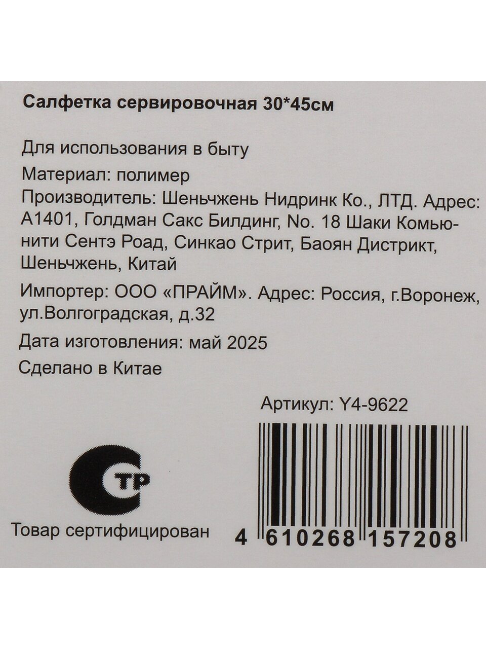 Какой материал у салфетки сервировочной Y4-9622?