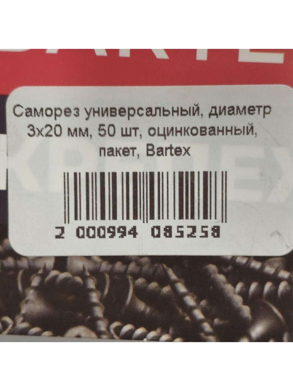 Вы можете приобрести «Саморез универсальный, диаметр 3х20 мм, 50 шт, оцинкованный, пакет, Bartex» и другие товары в нашем интернет-магазине в Ельце по низким ценам и с бесплатным самовывозом.