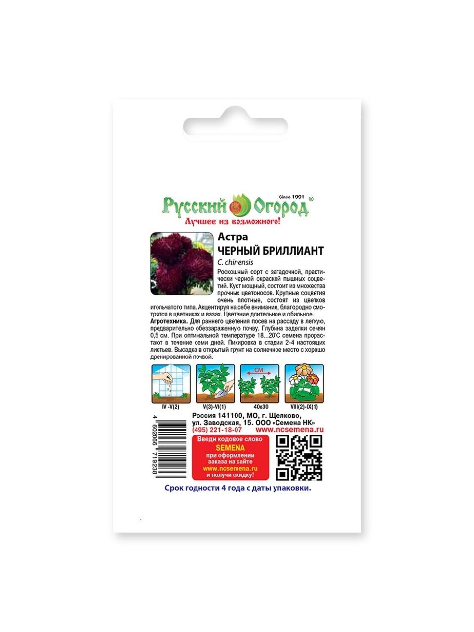 Вы можете приобрести «Семена Цветы, Астра, Черный Бриллиант, цветная упаковка, Русский огород» и другие товары в нашем интернет-магазине в Клинцах по низким ценам и с бесплатным самовывозом.