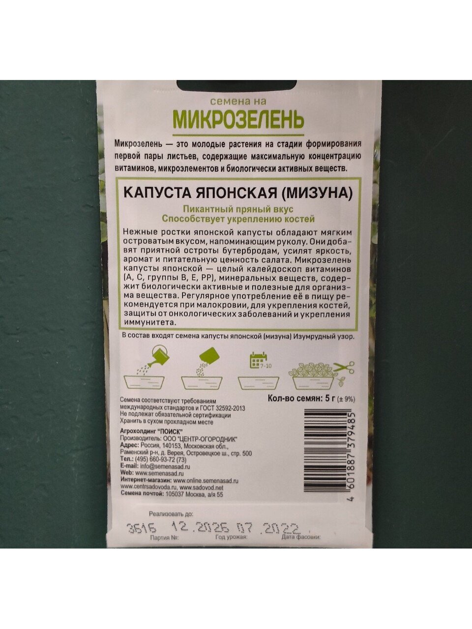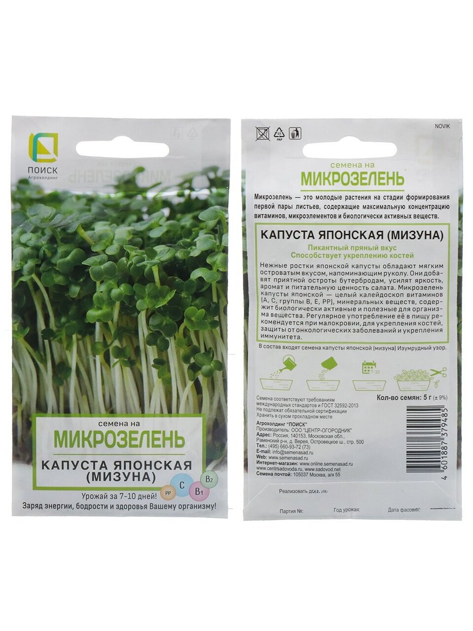 Вы можете приобрести «Семена Микрозелень, Капуста японская, 5 г, Поиск» и другие товары в нашем интернет-магазине в Борисоглебске по низким ценам и с бесплатным самовывозом.