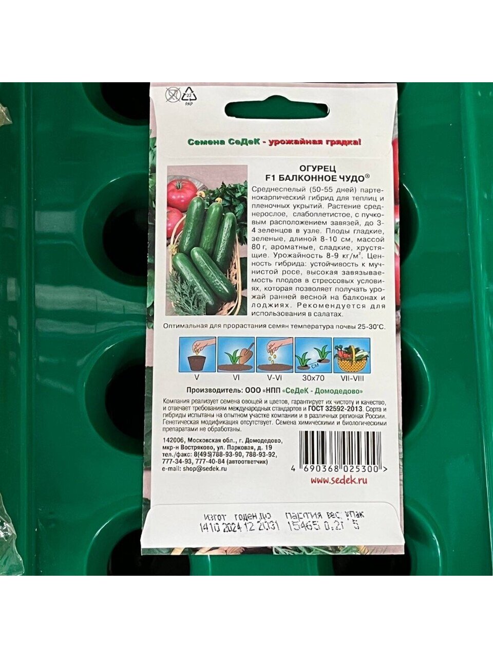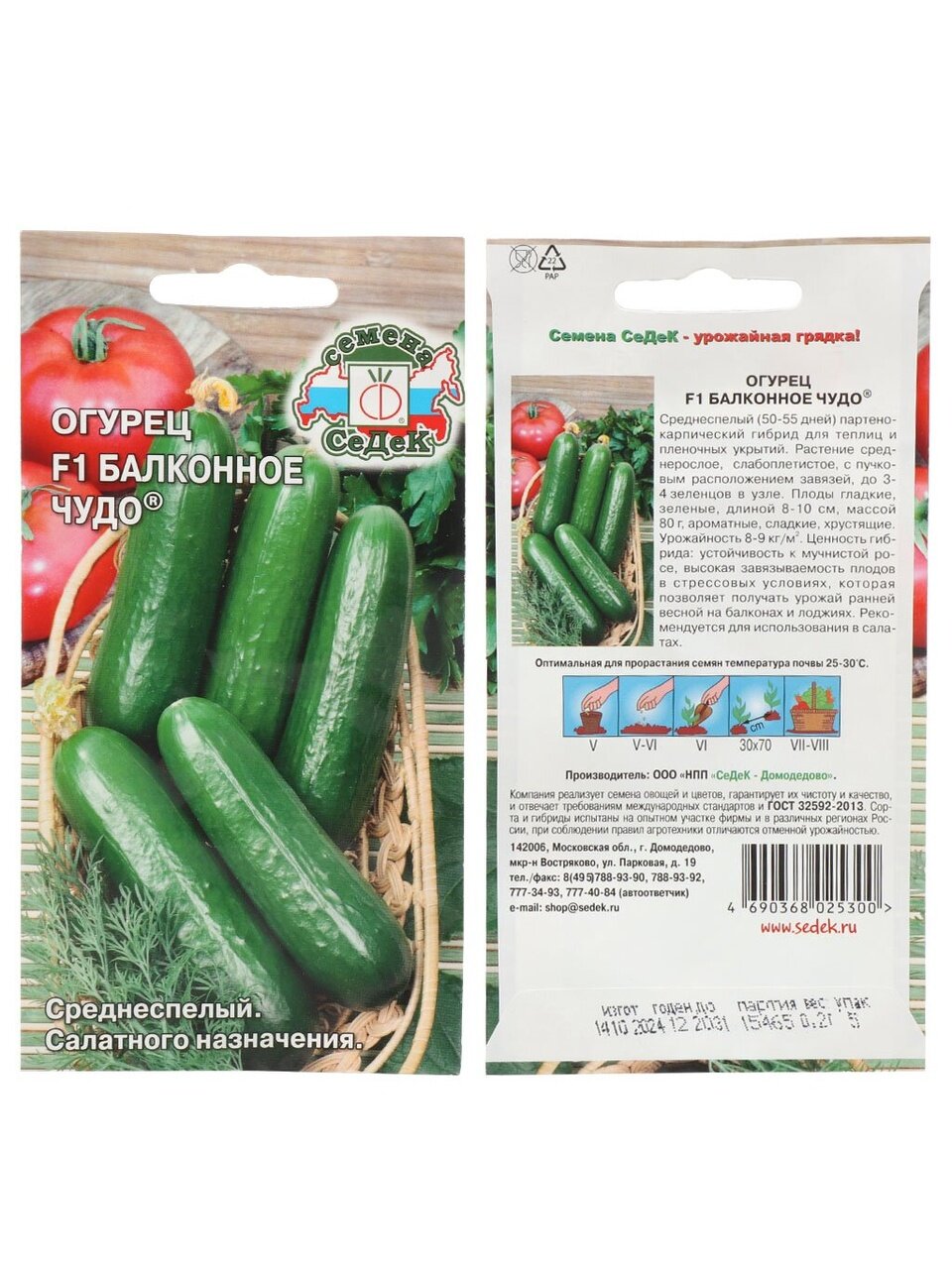 Откройте для себя мир огородничества с семенами огурца "Чудо ® F1" от бренда Седек. Этот среднеспелый гибрид идеально подходит для выращивания на балконе, даря свежие и вкусные плоды. Цветная упаковка семян станет ярким акцентом в вашей коллекции садовода.