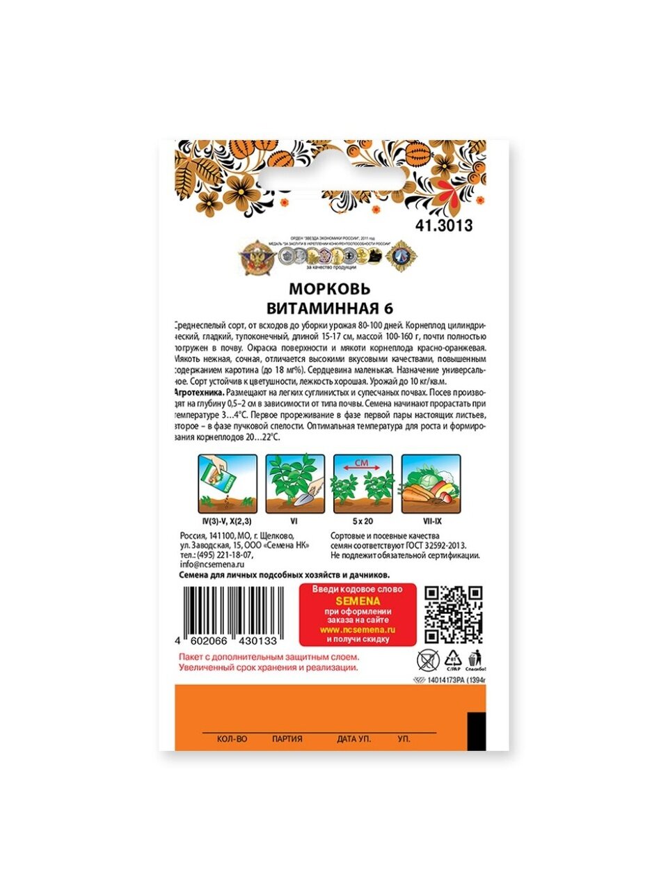 Вы можете приобрести «Семена Морковь, Витаминная 6, 4 г, 200% NEW, цветная упаковка, Русский огород» и другие товары в нашем интернет-магазине в Санкт-Петербургe по низким ценам и с бесплатным самовывозом.