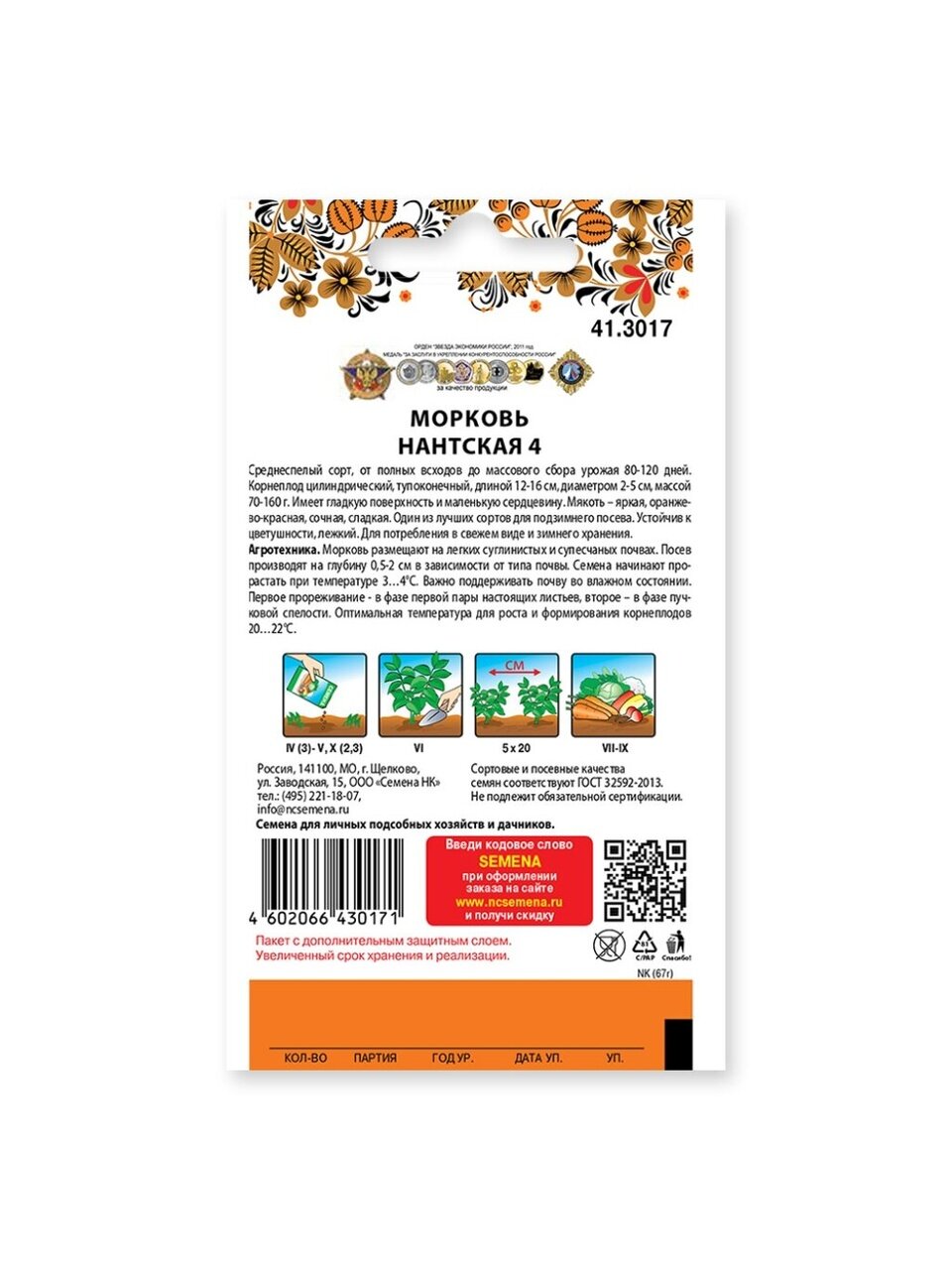 Вы можете приобрести «Семена Морковь, Нантская 4, 4 г, 200% NEW, цветная упаковка, Русский огород» и другие товары в нашем интернет-магазине в Ельце по низким ценам и с бесплатным самовывозом.