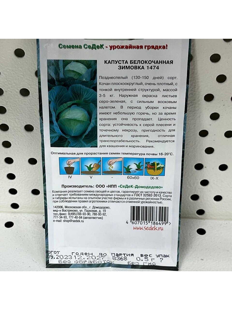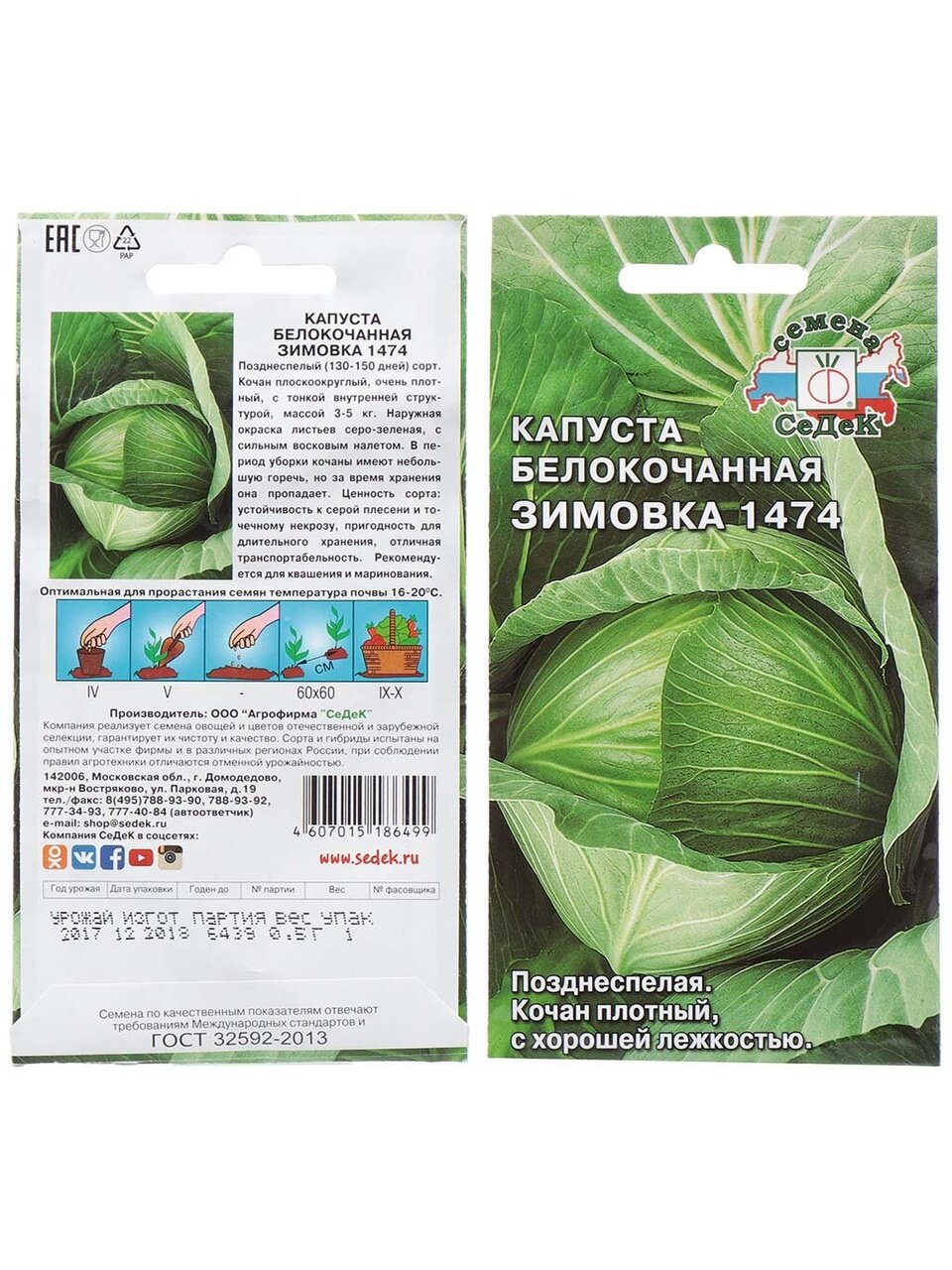 Вы можете приобрести «Семена Капуста белокочанная, Зимовка 1474, 0.5 г, цветная упаковка, Седек» и другие товары в нашем интернет-магазине в Твери по низким ценам и с бесплатным самовывозом.