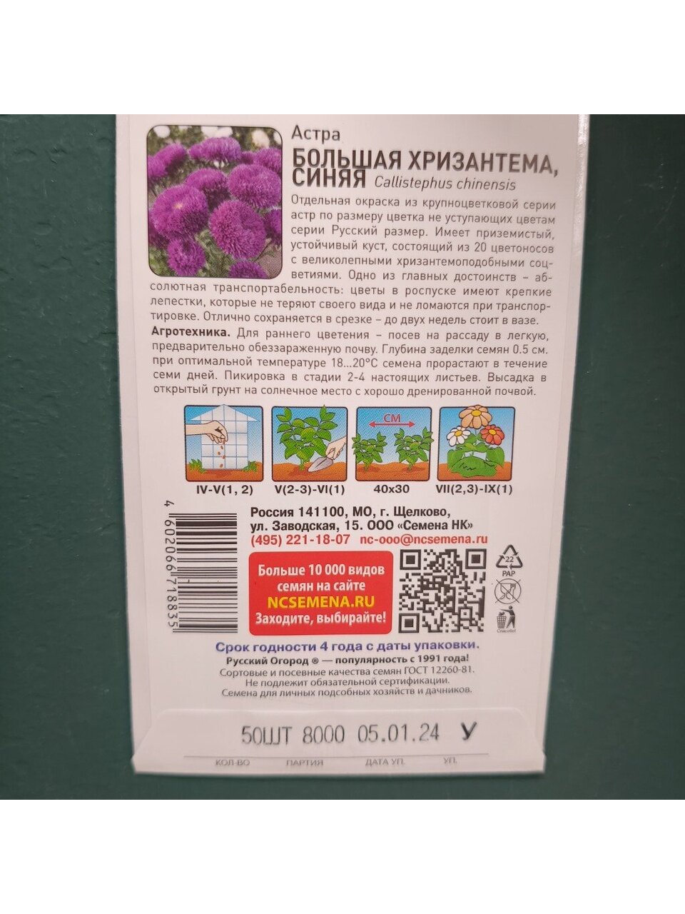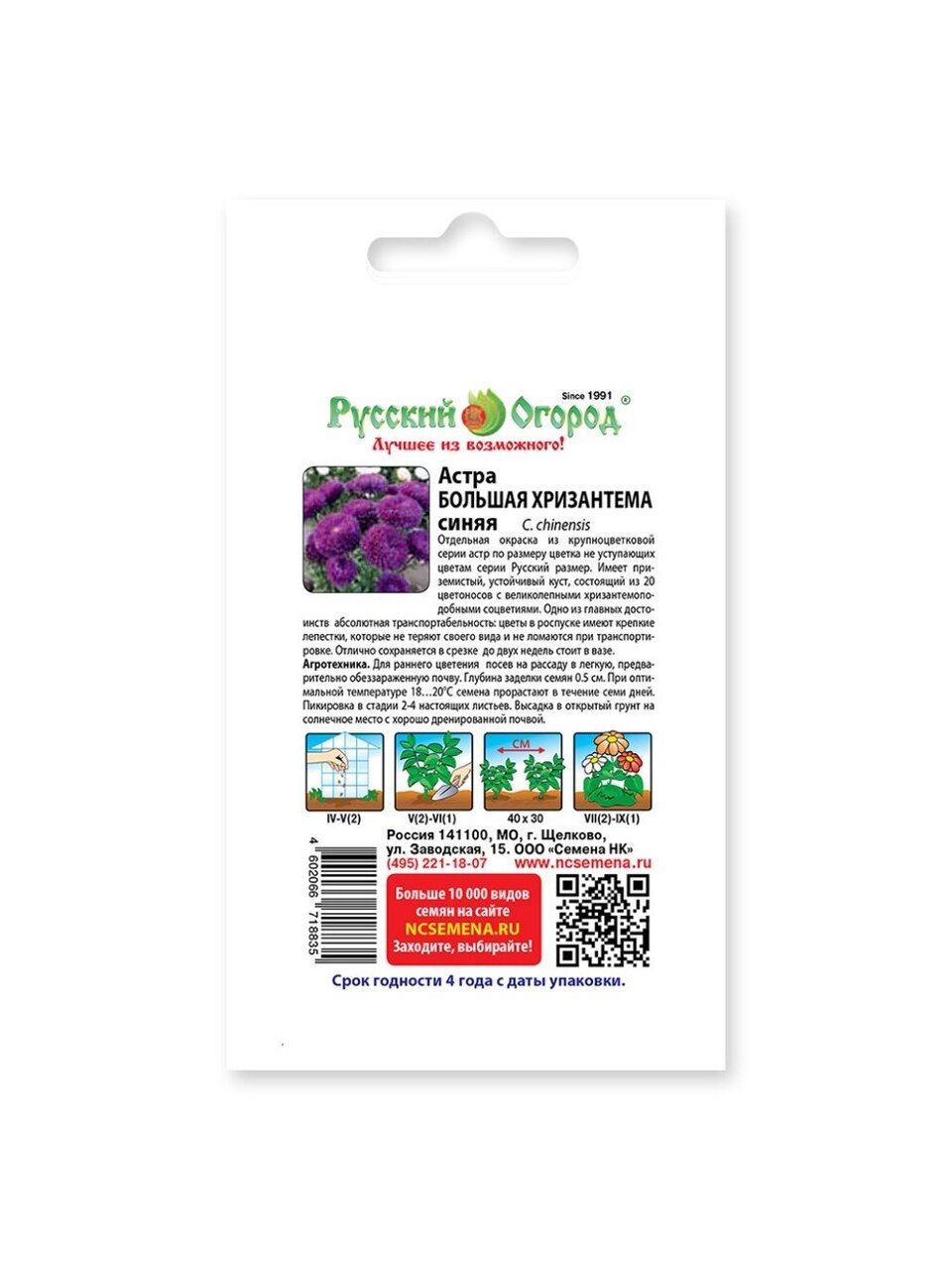 Вы можете приобрести «Семена Цветы, Астра, Большая хризантема синяя, цветная упаковка, Русский огород» и другие товары в нашем интернет-магазине в Ставрополе по низким ценам и с бесплатным самовывозом.