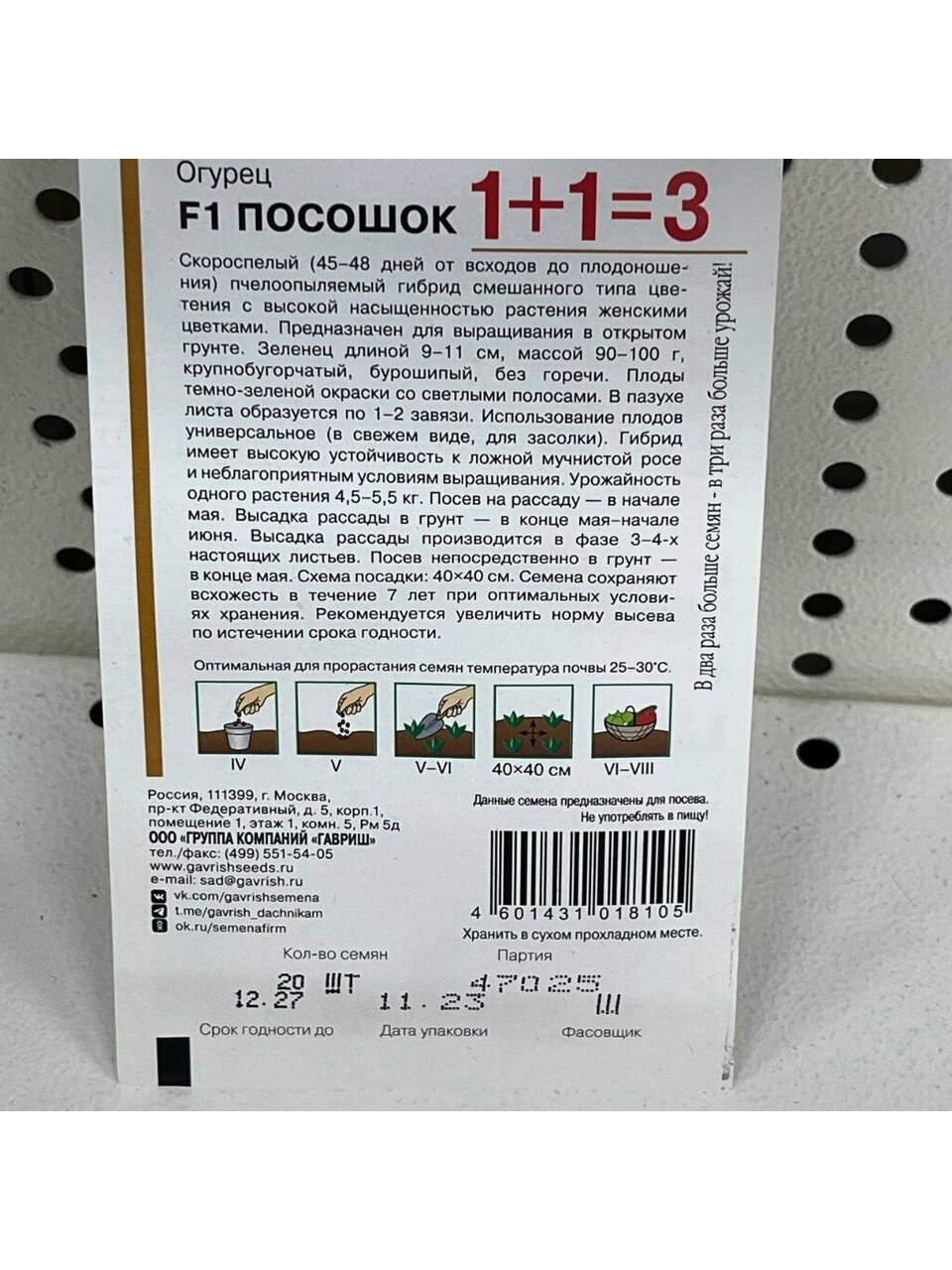 Вы можете приобрести «Семена Огурец, Посошок F1, 1+1, 1+1, авторские, цветная упаковка, Гавриш» и другие товары в нашем интернет-магазине в Орле по низким ценам и с бесплатным самовывозом.