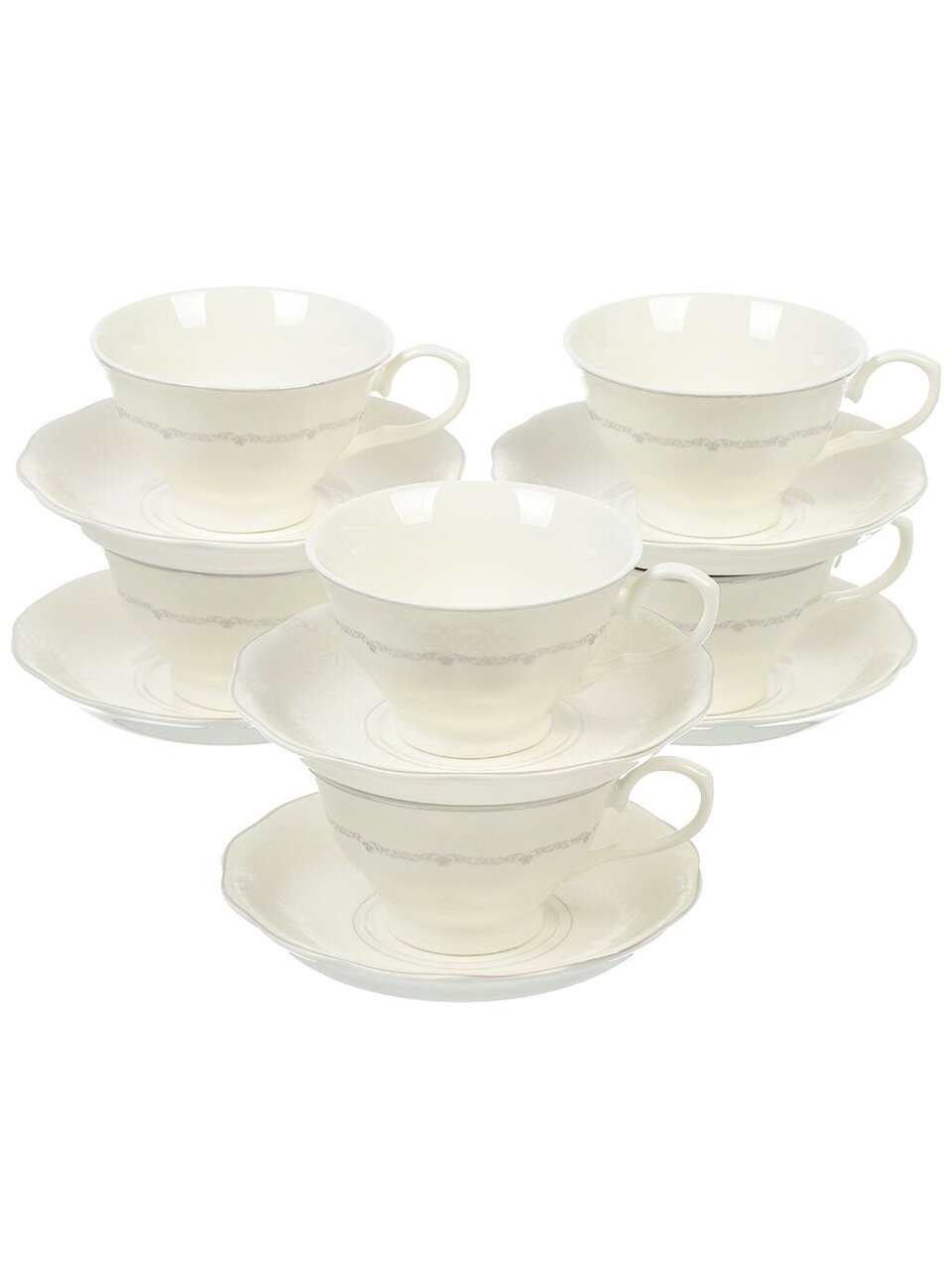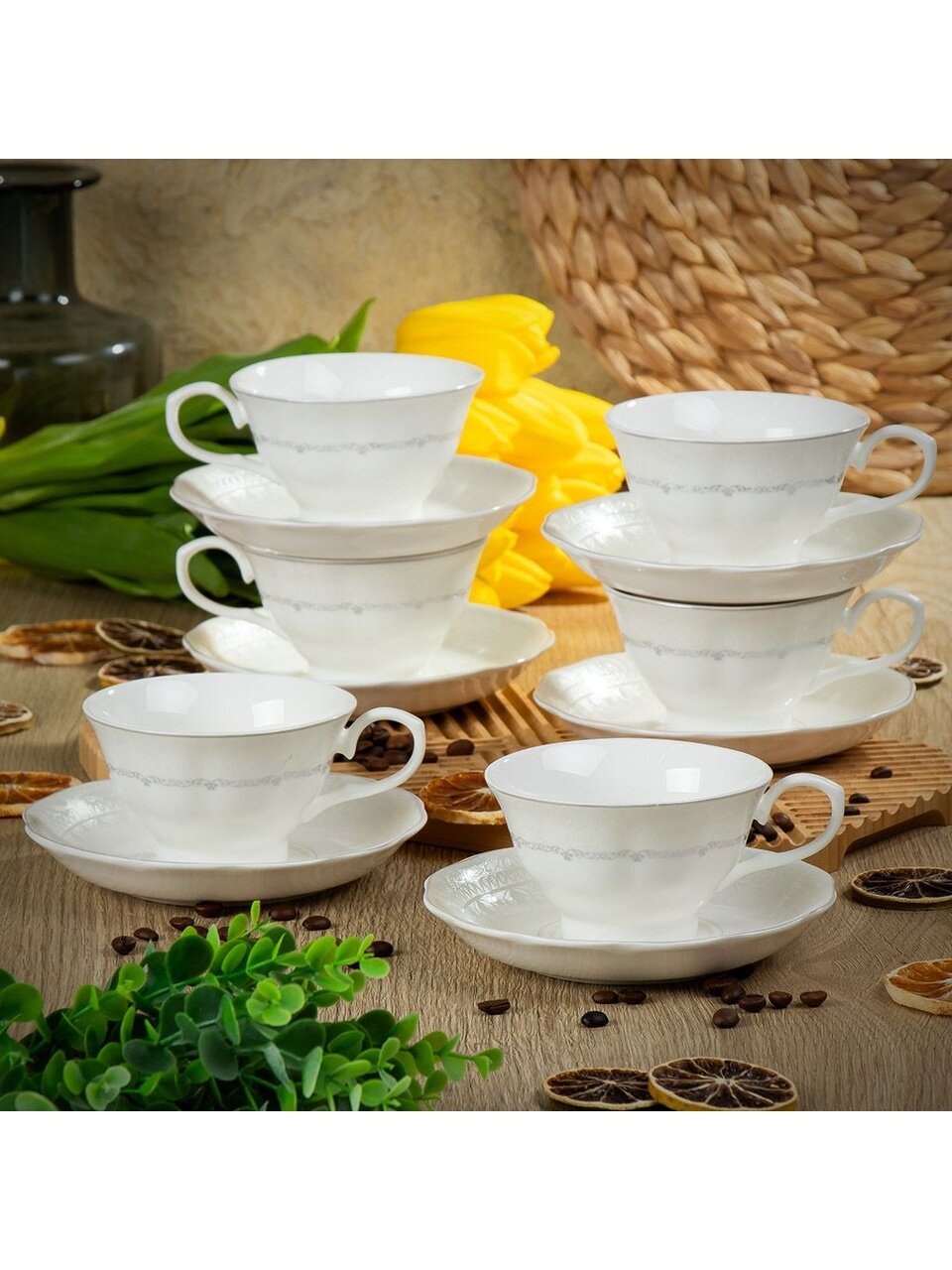 В наборе 12 предметов: 6 чашек объёмом по 200 мл и 6 блюдец, рассчитанных на полноценное чаепитие для шести человек.