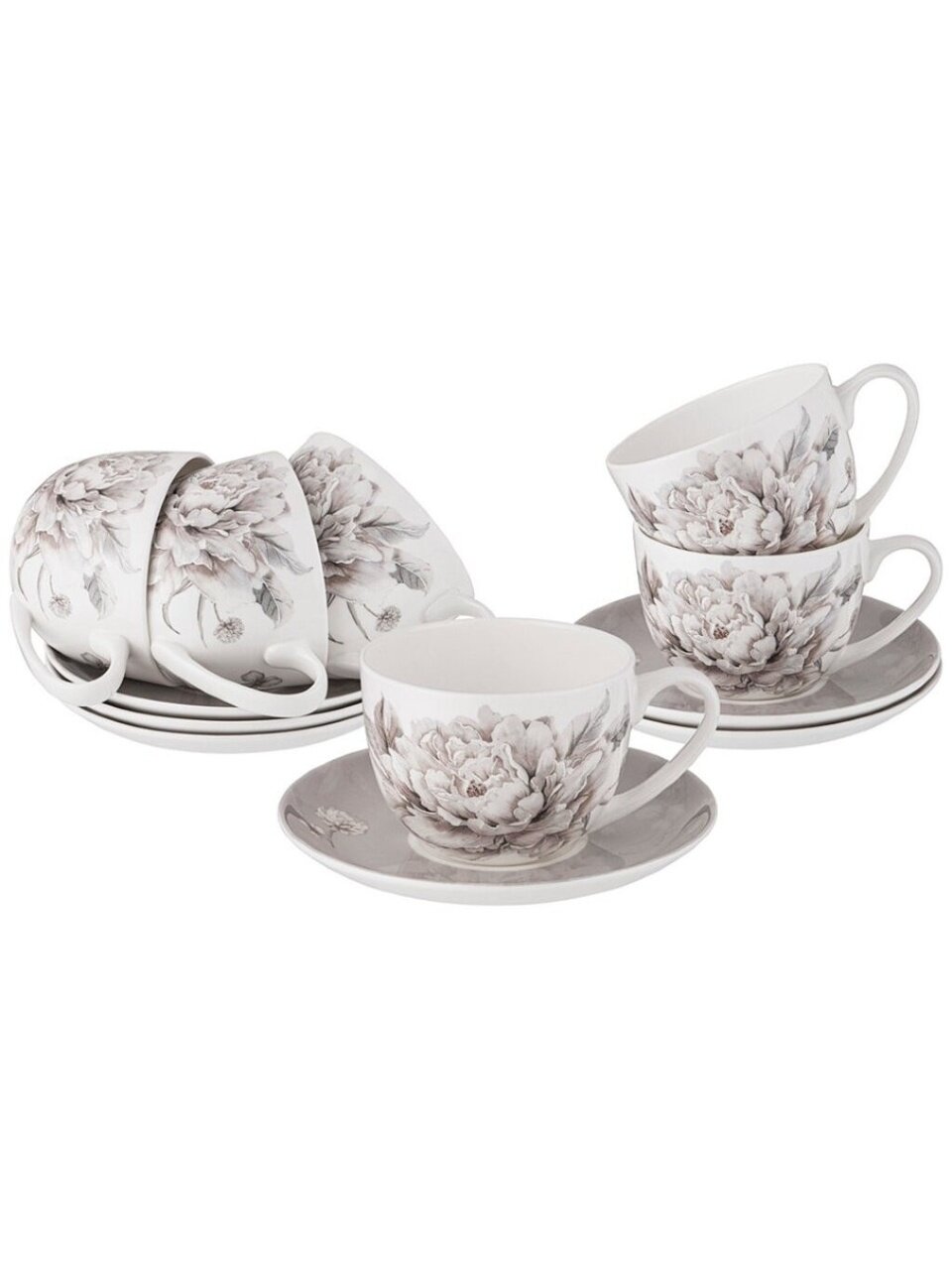 Чайный набор Lefard White Flower — 12 предметов на 6 персон, 330 мл, фарфор, стильный подарок в подарочной упаковке для дома и дачи.