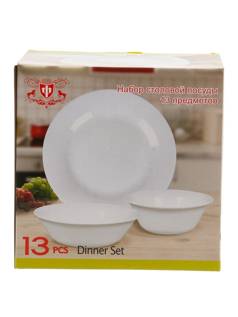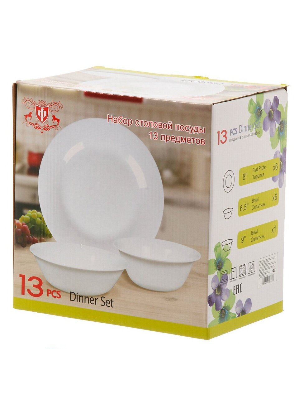 - 13 предметов на 6 персон: оптимальный комплект для семьи, приёма гостей или праздничного ужина.