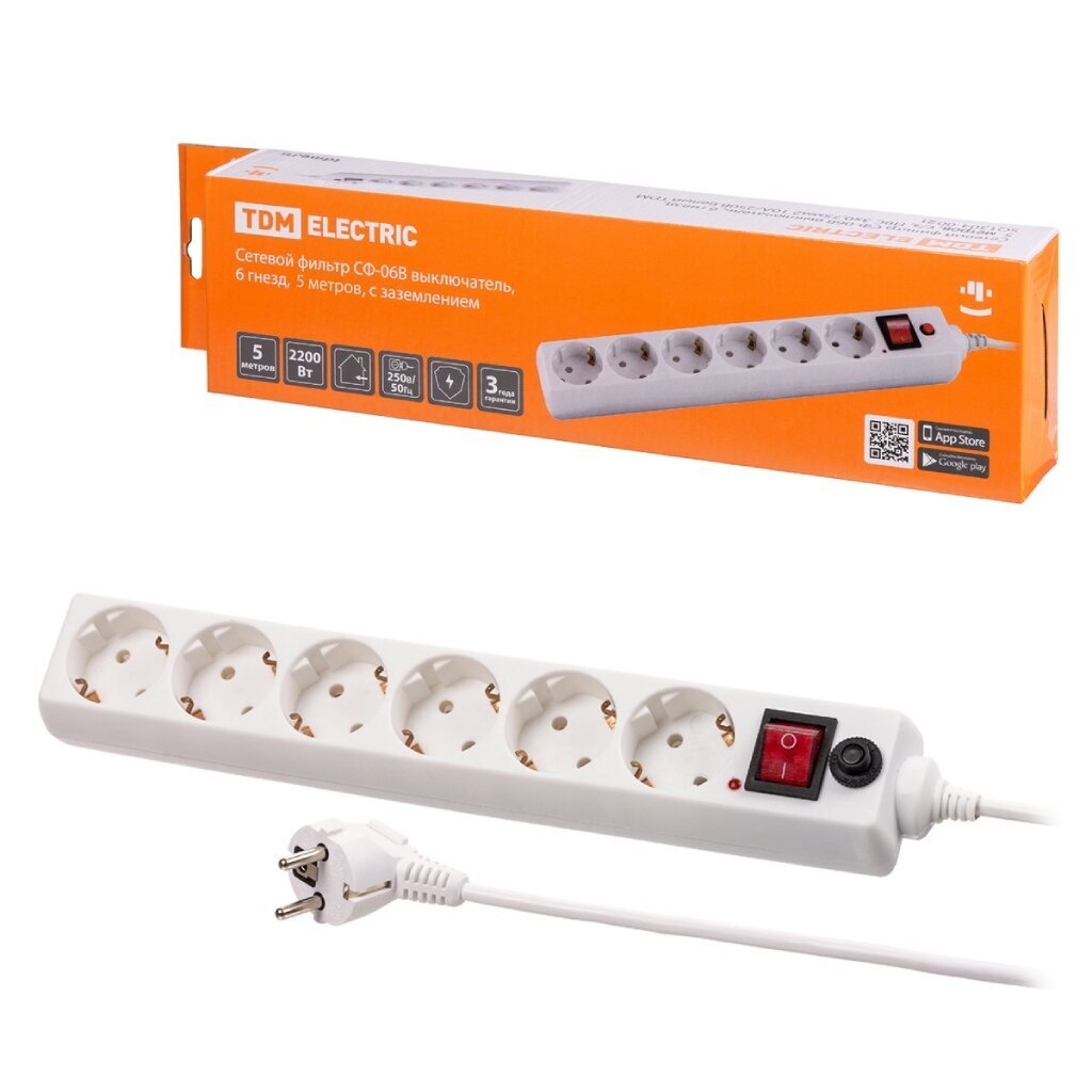 Вы можете приобрести «Сетевой фильтр 6 гнезд, 5 м, ПВС, 3х0.75 мм², с заземлением, 10 А, выключатель, белый, TDM Electric, СФ-06В, SQ1304-0021» и другие товары в нашем интернет-магазине в Орле по низким ценам и с бесплатным самовывозом.