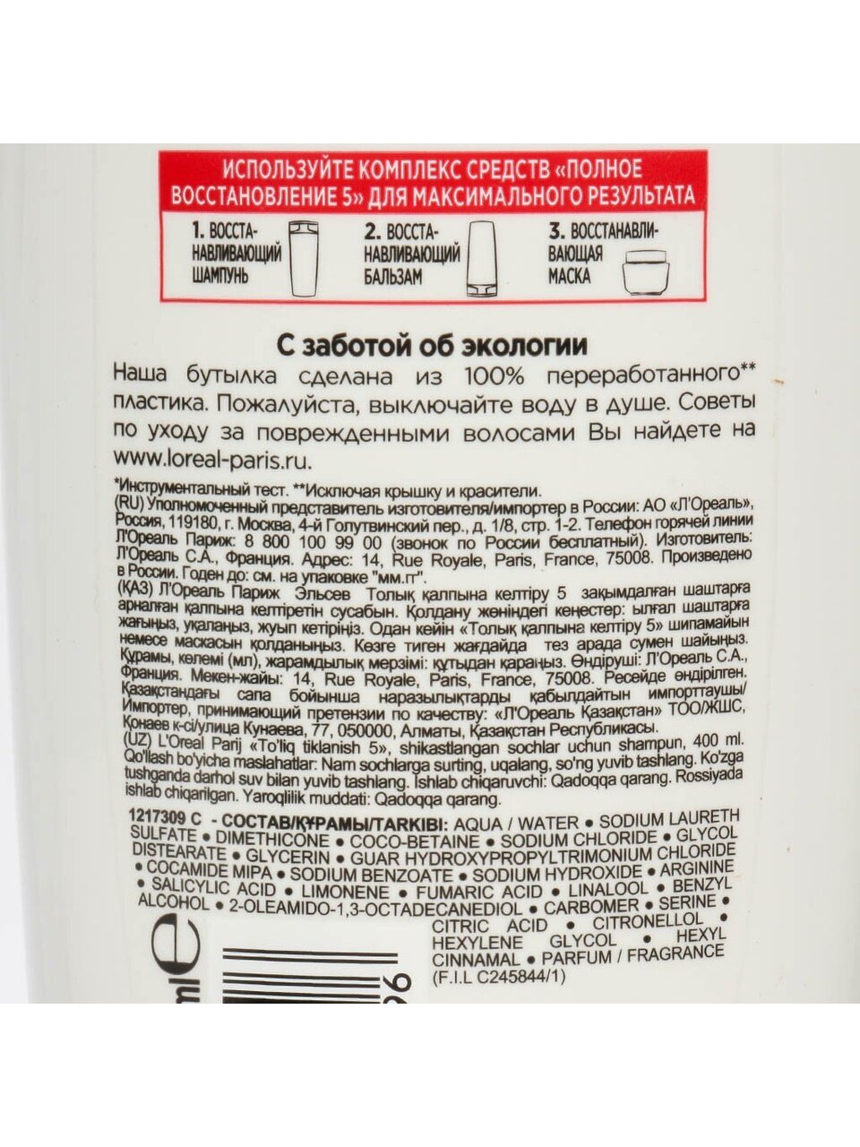 Шампунь L'Oreal Elseve, Полное восстановление 5, 400 мл — идеальный выбор для тех, кто заботится о здоровье и красоте волос. Продукт предназначен для эффективного ухода, сочетая в себе современные технологии и тщательно подобранные компоненты. Формула шампуня разработана для глубокого восстановления, направленного на решение пяти основных признаков поврежденных волос. Благодаря этому средству можно вернуть локонам силу, эластичность и блеск. Универсальный объем 400 мл отлично подходит для регулярного домашнего использования, обеспечивая длительный результат и экономичный расход.