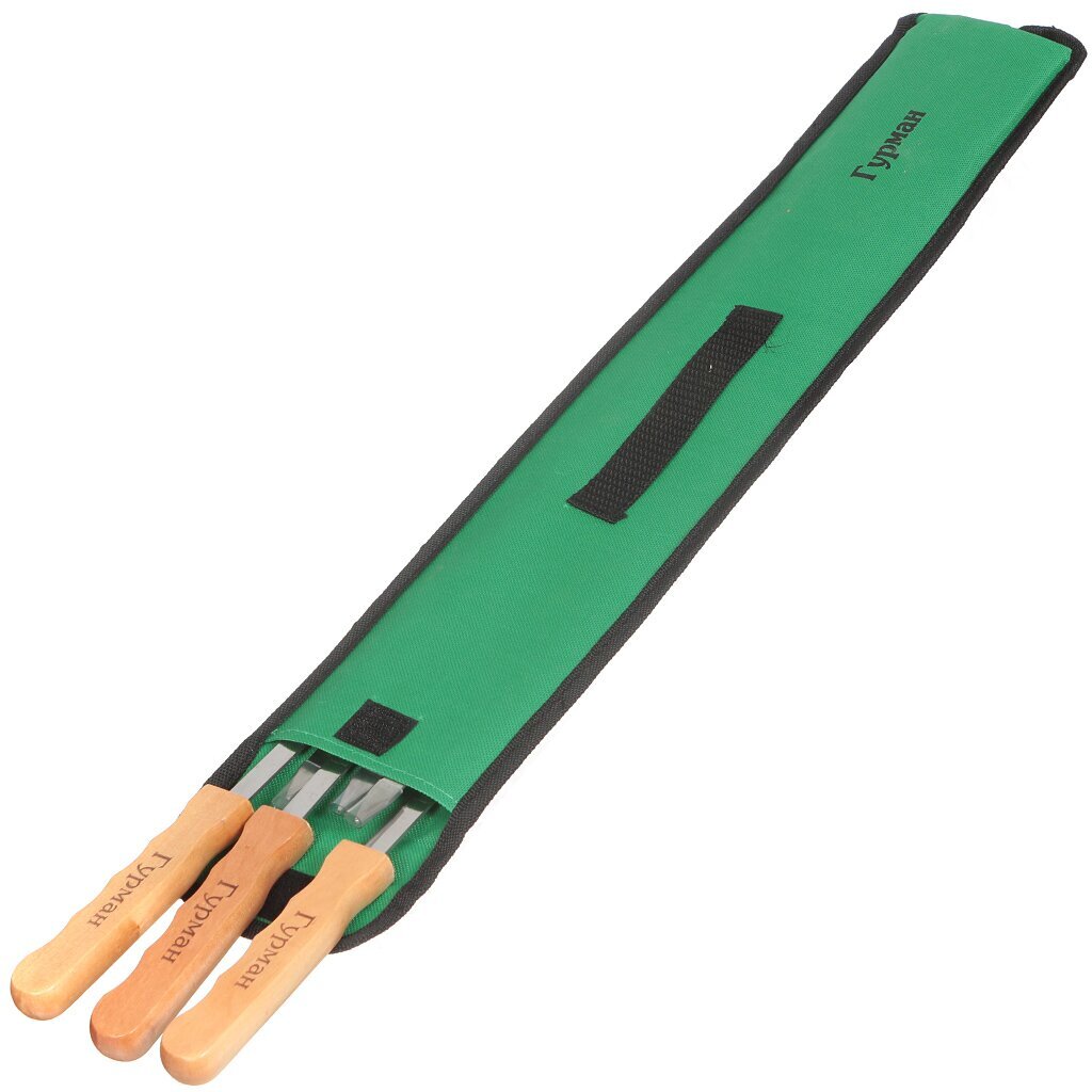 - Этот набор станет незаменимым помощником на пикнике, рыбалке или охоте. Он упакован в чехол, который защищает шампуры от повреждений и грязи.