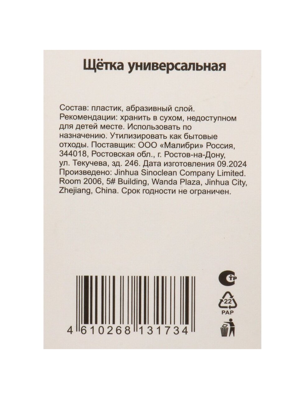 Щетка для мытья с абразивным слоем Марья Искусница: универсальное решение для быстрой и эффективной уборки дома и дачи. Прочный пластик, экономия времени и сил.