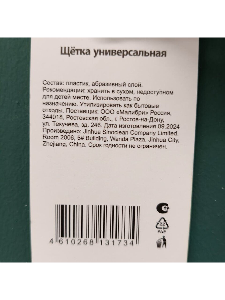 - Универсальность — подходит для любых поверхностей, включая плитку, посуду и сантехнику, благодаря абразивному слою.
