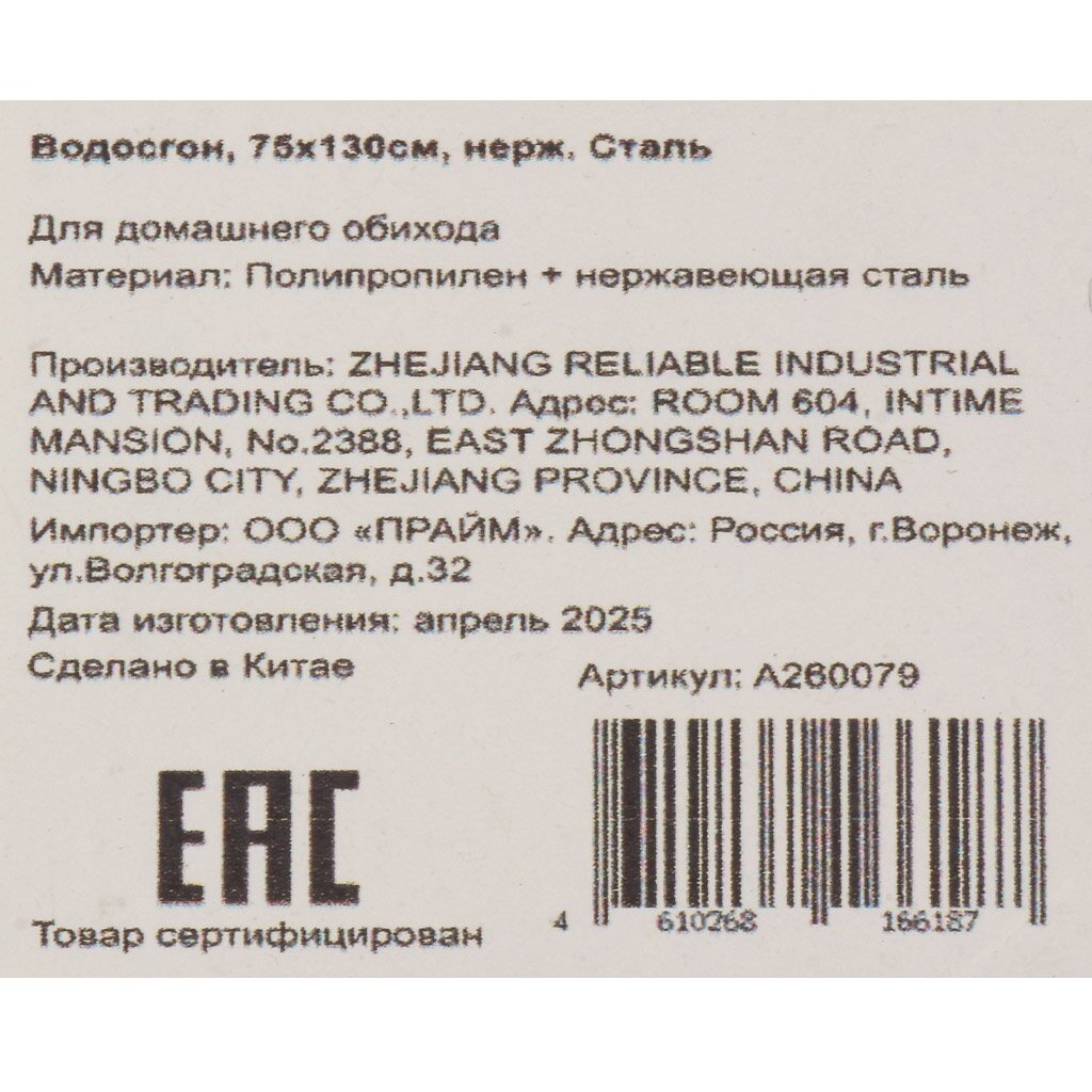 Водосгон 75х130 см из нержавеющей стали — быстрый способ убрать воду с больших поверхностей без разводов и следов. Экономьте время на уборке — идеальное решение для дачи, гаража и дома.