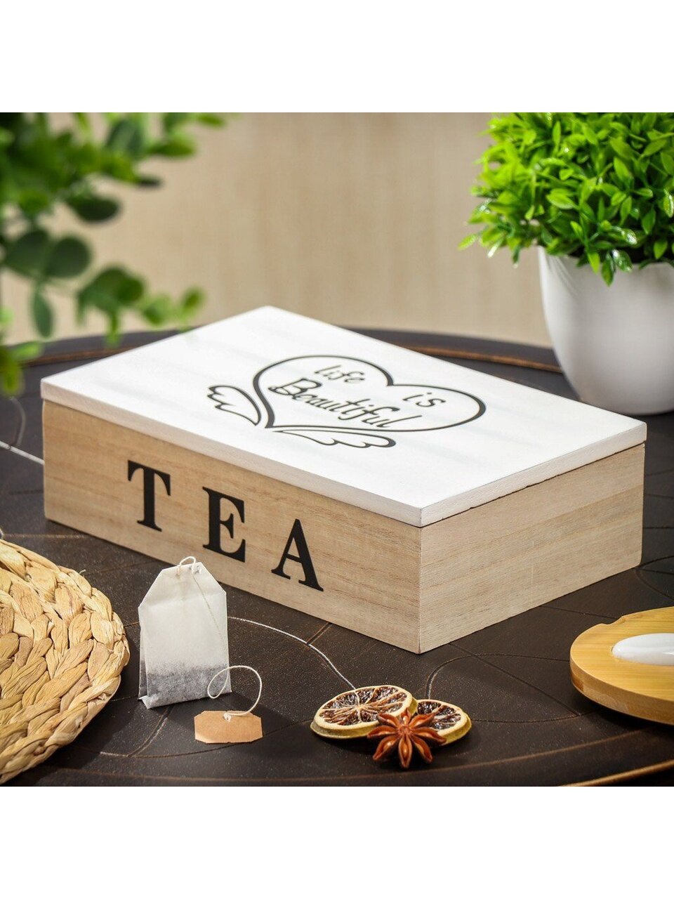 Емкость предназначена для хранения чая. Такая коробка очень функциональна и всегда пригодится на кухне.