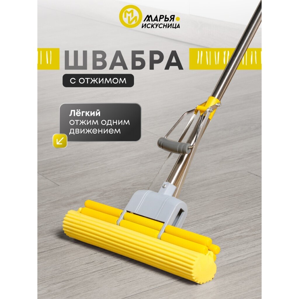 Вы можете приобрести «Швабра МОП губка, ПВА, 125х33 см, желтая, с двойным отжимом, телескопическая ручка, Марья Искусница, KD-14-P03» и другие товары в нашем интернет-магазине в Ярославле по низким ценам и с бесплатным самовывозом.