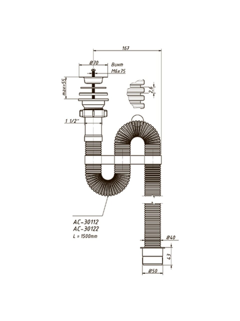 Гофрированный сифон – обладает простой конструкций, его часто используют, если под мойкой мало свободного пространства. Система может принять любую форму, ведь представлена гофрированной трубой, она легко складывается и раскладывается. Это компактный сифон для кухонной мойки.