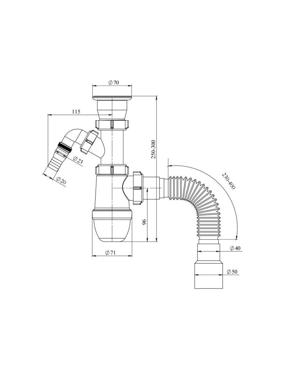 - Диаметр подключения к канализационной трубе: 40 мм.