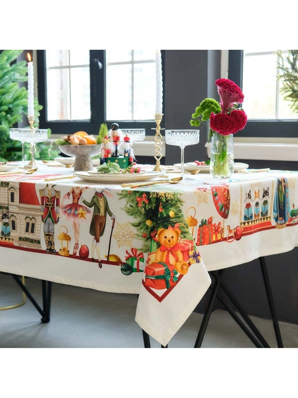 Новогодняя скатерть станет настоящим символом праздника, наполнит ваш дом ощущением уюта и тепла, и создаст незабываемую атмосферу торжества и радости.