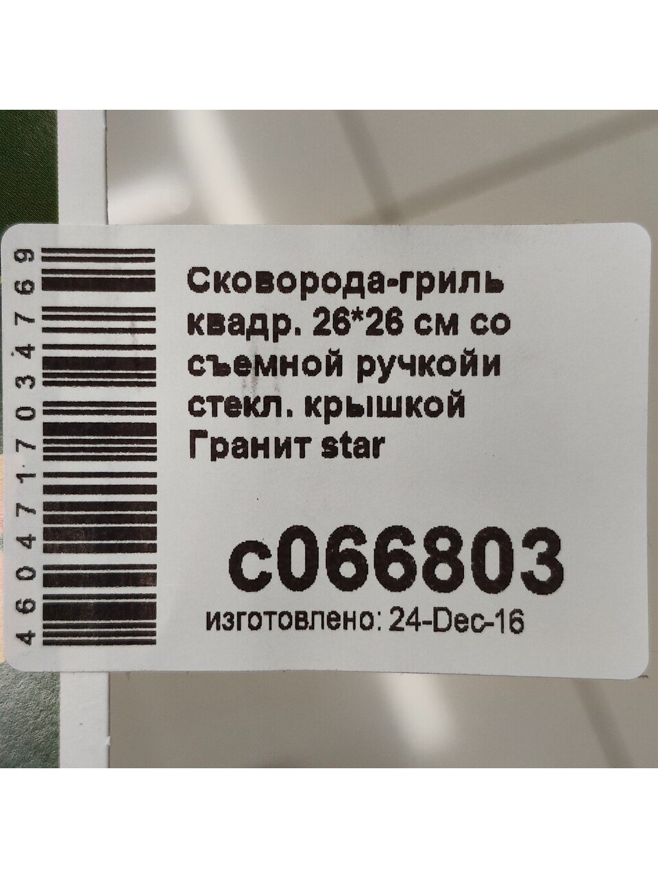Вы можете приобрести «Сковорода-гриль литой алюминий, 26 см, антипригарное покрытие, Мечта, Гранит star, с крышкой, съемная ручка, квадрат, с066803» и другие товары в нашем интернет-магазине в Санкт-Петербургe по низким ценам и с бесплатным самовывозом.