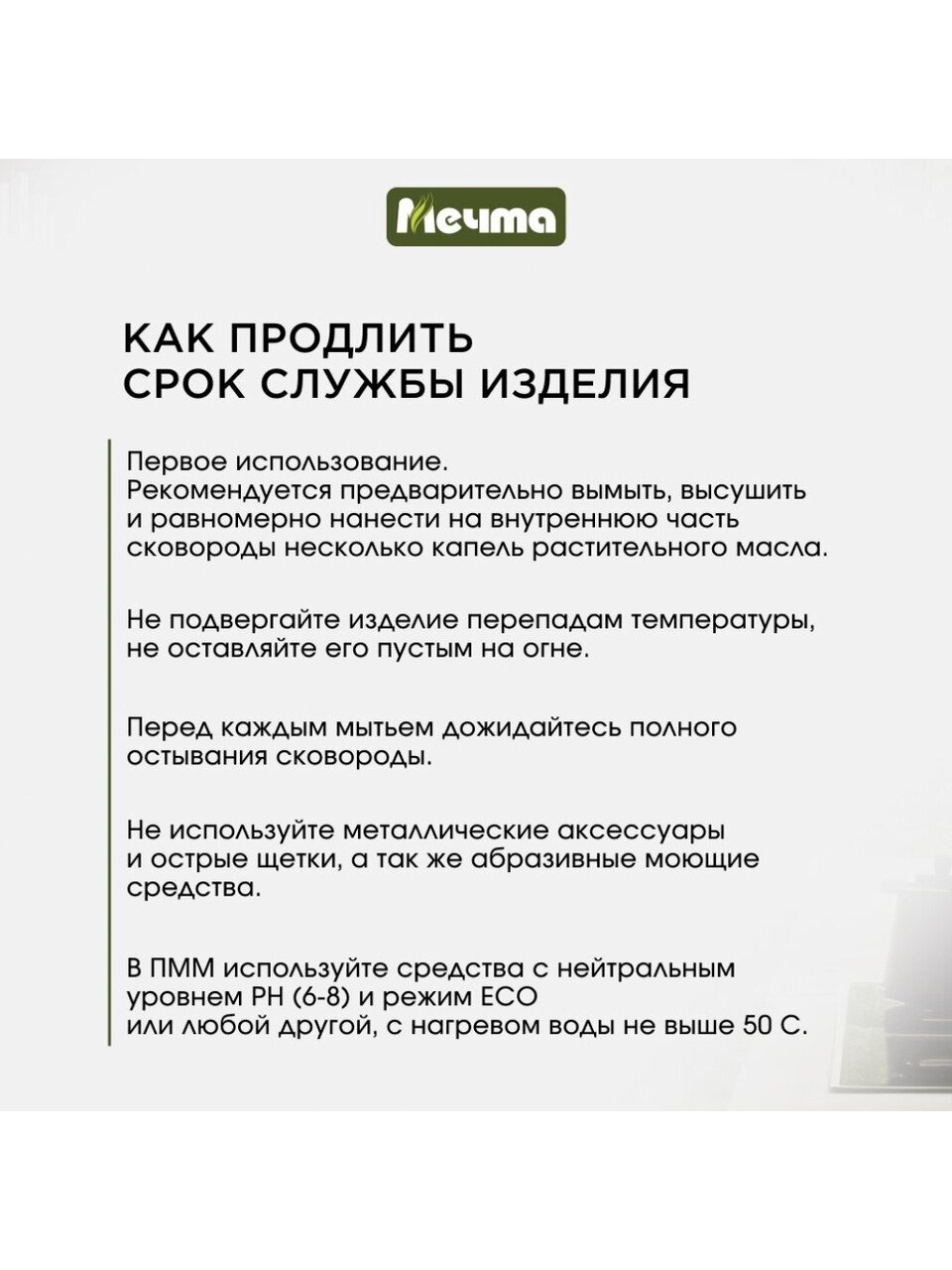 В отличие от обычных сковород с тонким дном, модель Мечта Гранит star устойчива к деформации, не боится перепадов температур и рассчитана на 5 лет интенсивного использования. Эксперты рекомендуют этот вариант для жарки мяса, рыбы, курицы без лишнего жира — вкусно и полезно!