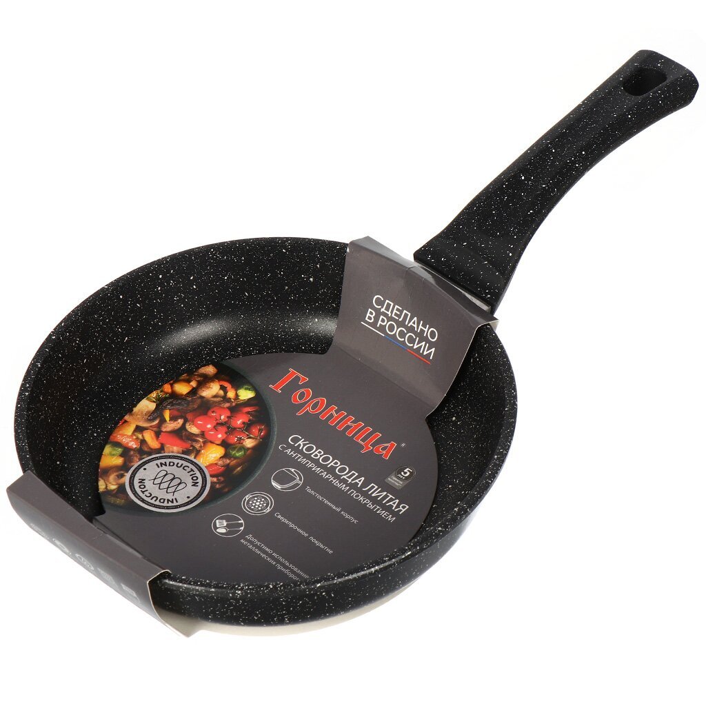 Сковорода Горница 22 см — литой алюминий, антипригарное мраморное покрытие, подходит для индукции. Универсальный выбор для дома и дачи.
