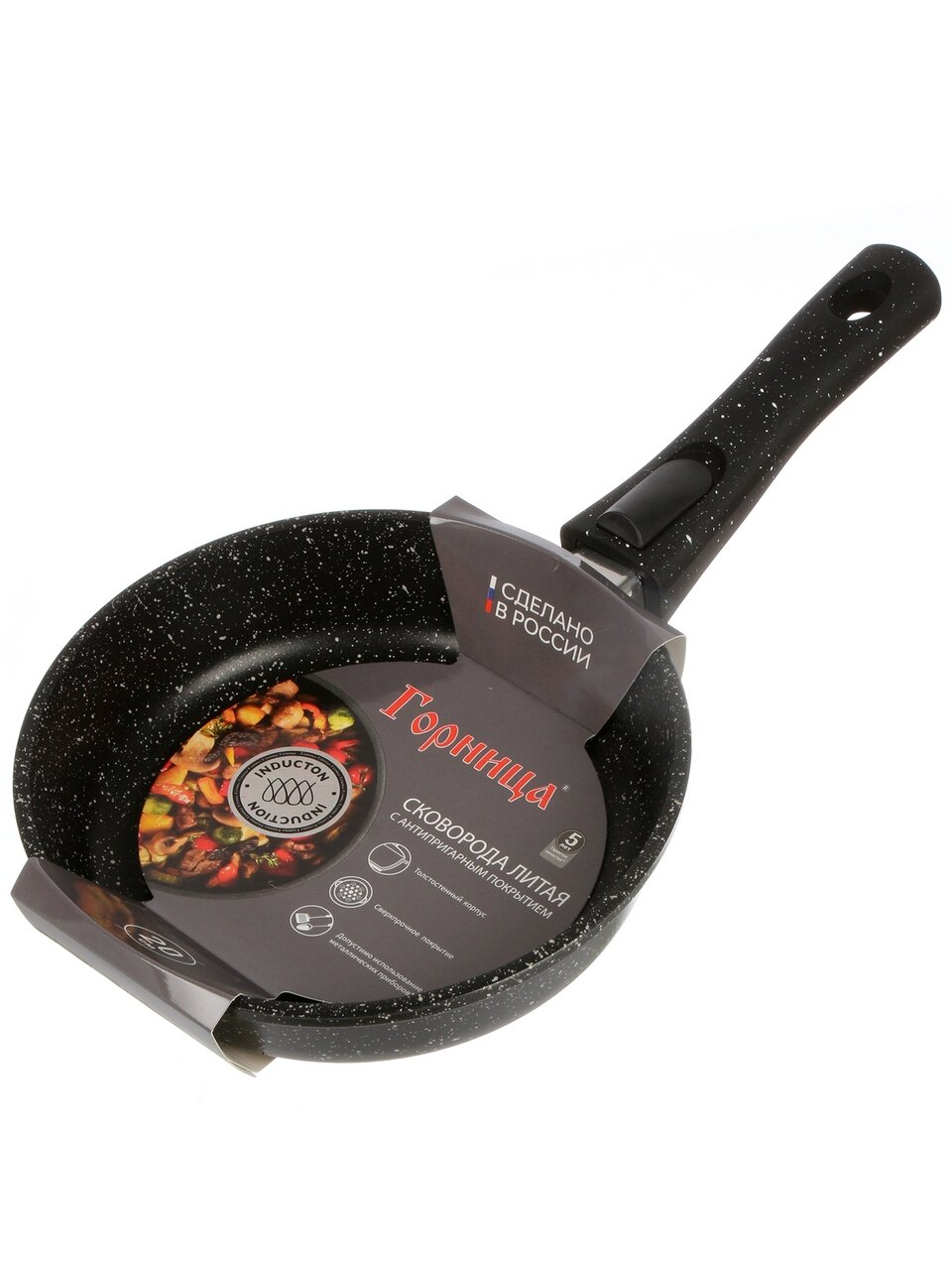 Сковорода литой алюминий 20 см Горница Гранит Induction — антипригарная классика для индукции и любых плит. Съемная ручка, прочность, забота о здоровье.