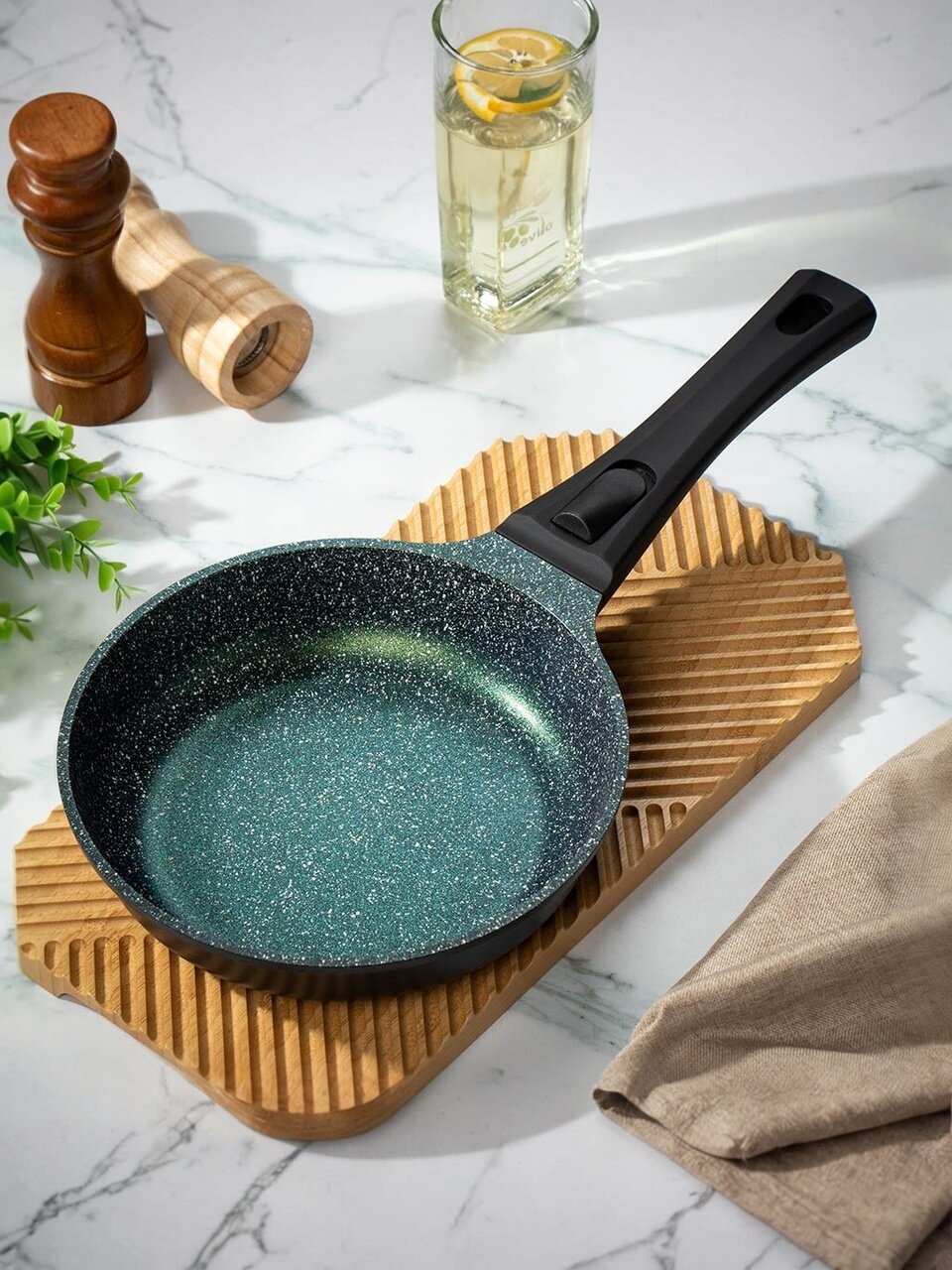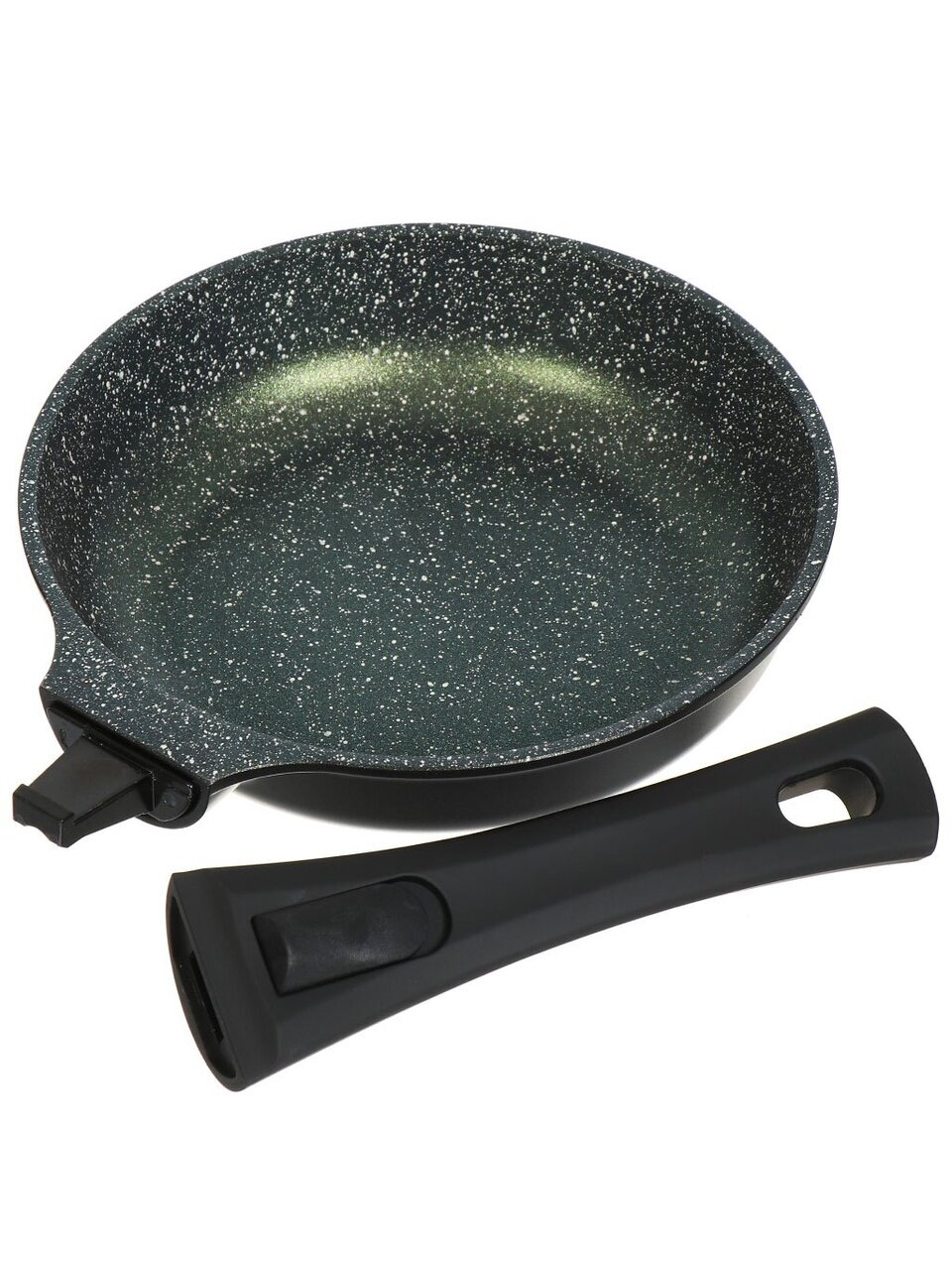 Сковорода 20 см из литого алюминия с мраморным антипригарным покрытием и съемной ручкой: идеальный выбор для здорового и быстрого приготовления дома и на даче.