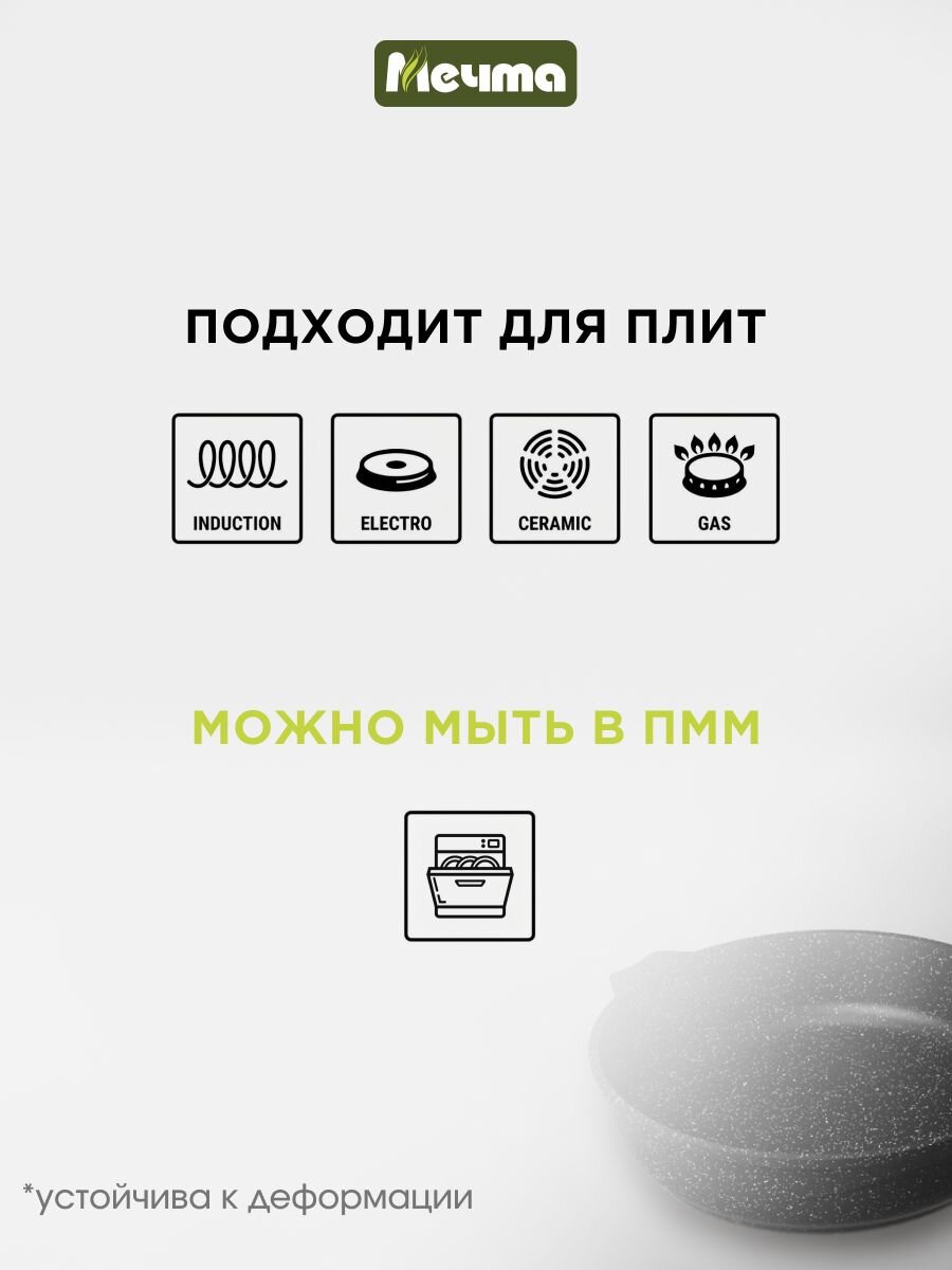Закажите сковороду Мечта Гранит Black Induction Pro 22 см по выгодной цене — получите долговечную посуду с антипригарным покрытием, подходящую для всех типов плит. Гарантия производителя 12 месяцев и быстрая доставка по России.