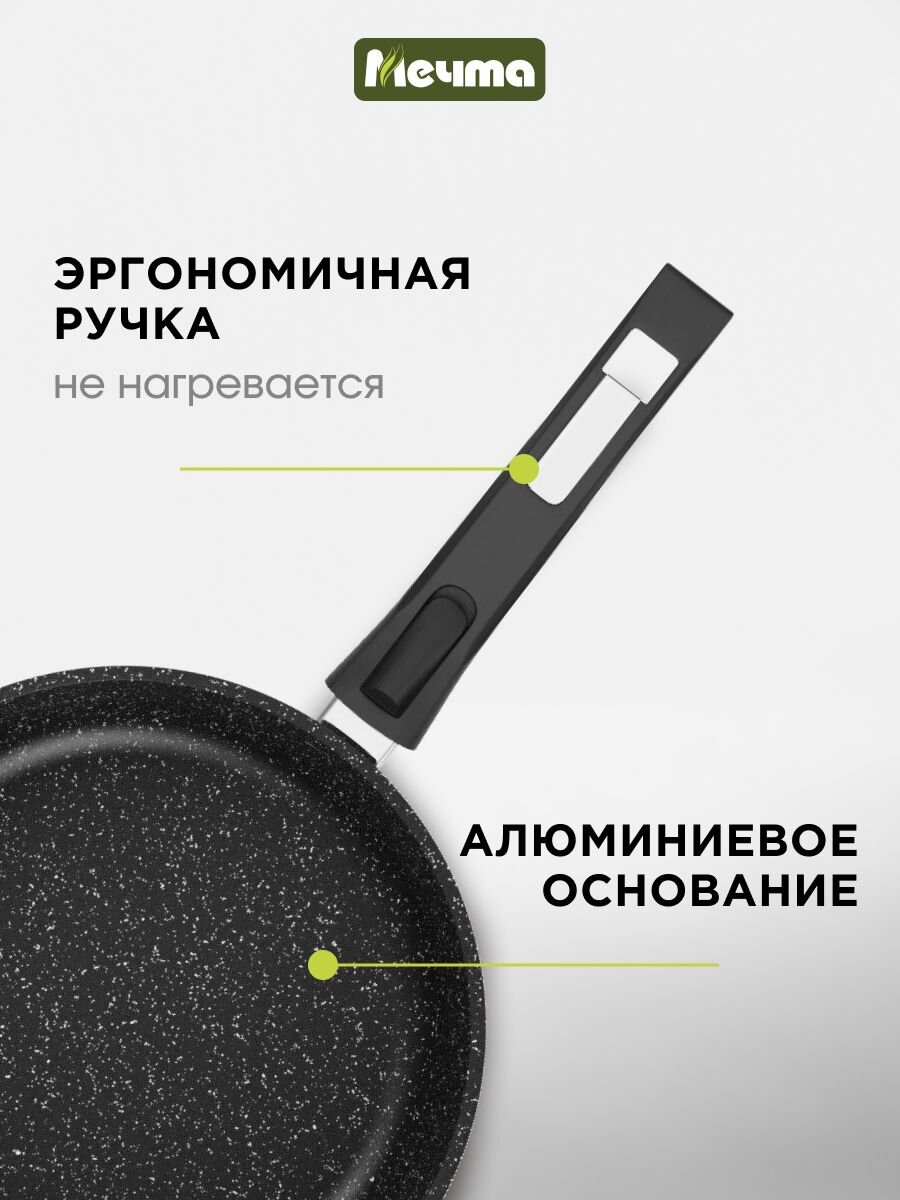 Сковорода 22 см из литого алюминия Мечта Гранит Black Induction Pro: идеальный выбор для индукции, антипригарное покрытие, съемная ручка, долговечность и стиль.